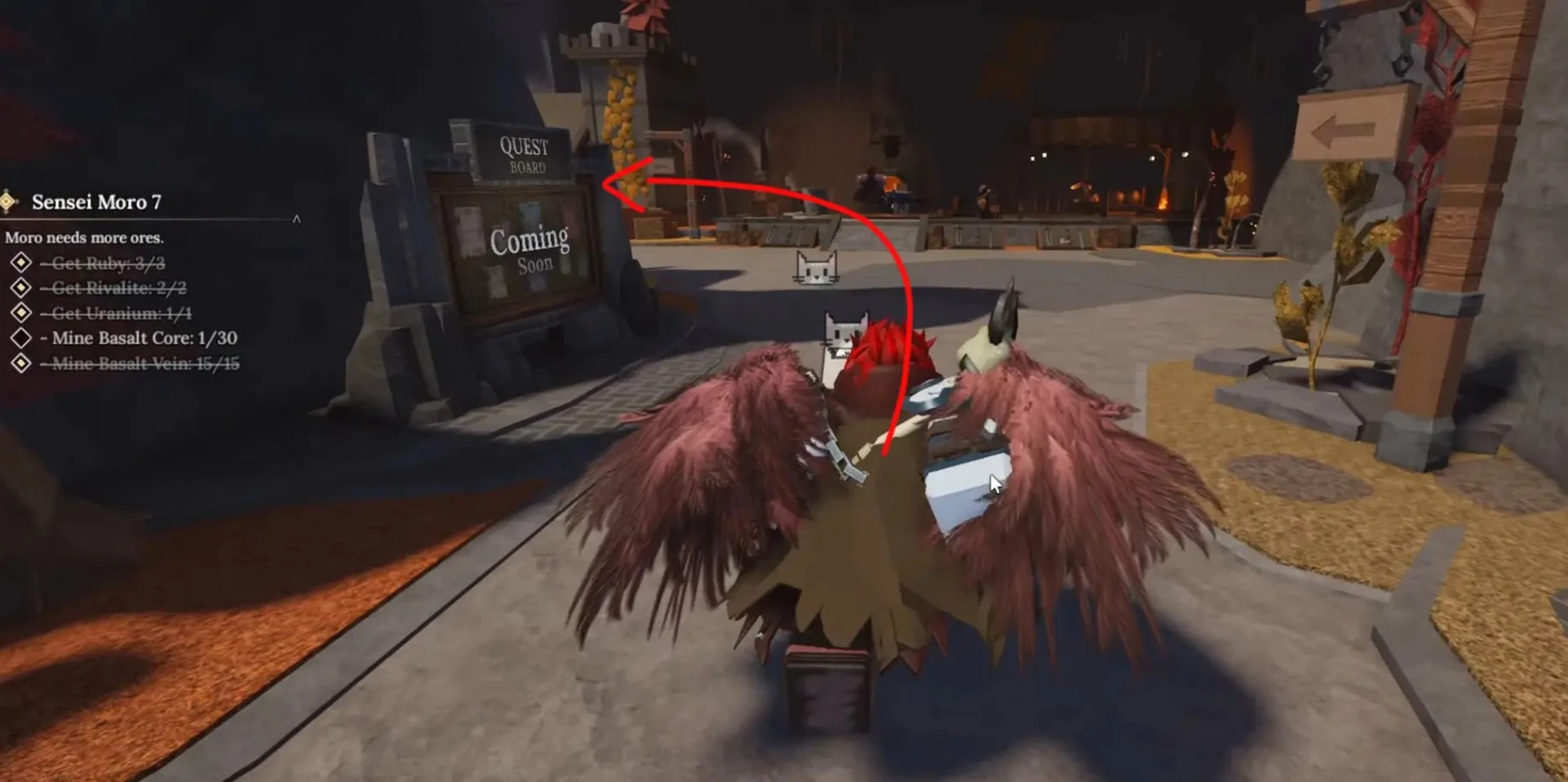 Этот NPC поручит вам миссию по поиску его пропавшего кота. Для этого вам потребуется отправиться в Забытое Королевство, используя портал. Однако, если вы недавно начали играть, доступ к этой области будет закрыт, пока вы не достигнете 10-го уровня и не завершите цепочку квестов сэнсэя Моро. Продолжайте развиваться, чтобы выполнить условия для телепортации.