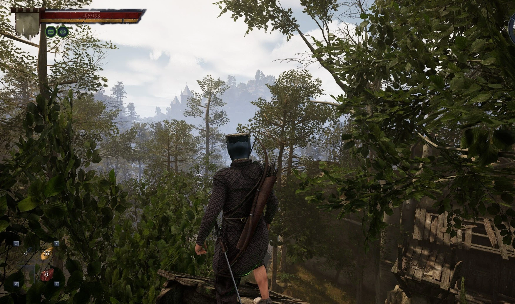Особого внимания заслуживает комплект брони дровосека. Поговорите с Акимом в лагере, чтобы получить ключ от амбара. Внутри вас ожидает Одежда Дровосека и Железный Амулет Ловкости (бонус +4 к Ловкости) – последний лежит внутри дома, лучше совершить кражу в дневное время. Вторую часть сета – Штаны Дровосека (бонус +3 к Силе и Выносливости) – возможно приобрести у торговца одеждой в городе. В город, к слову, можно проникнуть бесплатно, имея 12 Ловкости (амулет вам поможет), перебравшись через стену по лианам слева от входа.