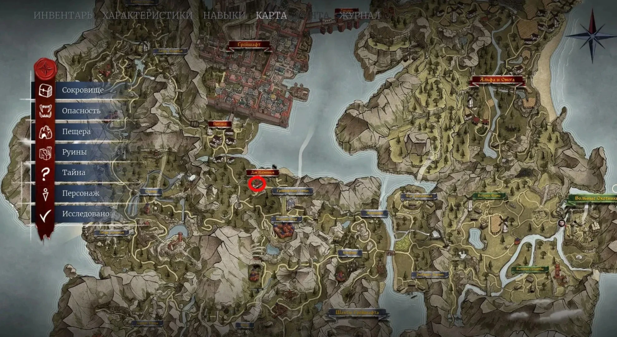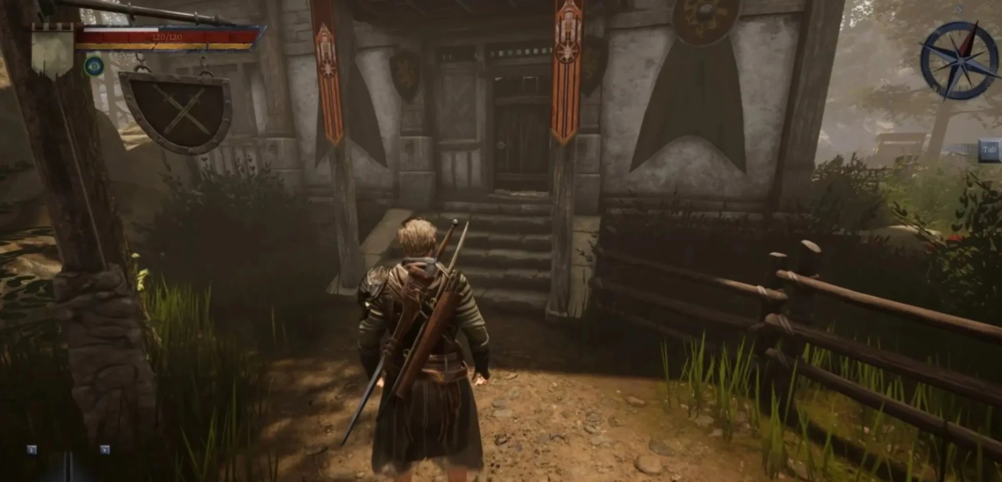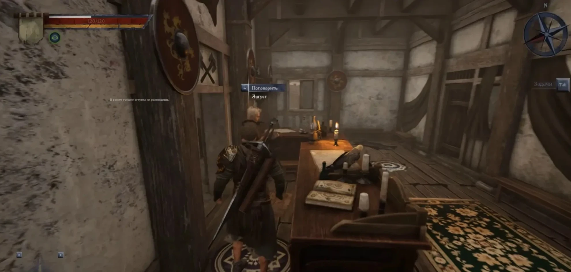 Первым делом, вам потребуется найти здание гильдии "Дом наемников", расположенное к юго-востоку от Грейшафта (используйте компас при отсутствии карты). Следуйте по главной дороге и на первой крупной развилке поверните налево. Вы увидите небольшое строение из камня. Внутри, за прилавком, вас ожидает Август.
