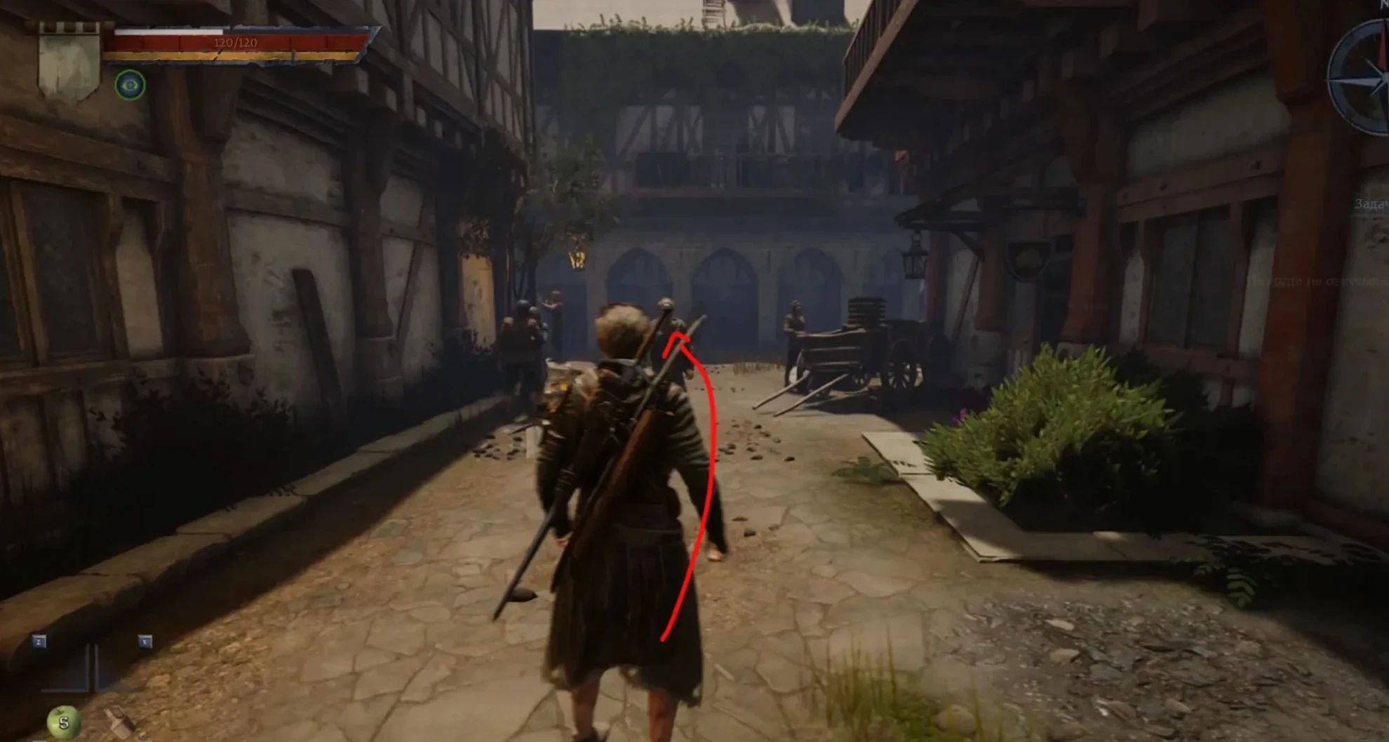 Важно отметить, что поиски Пракса в Пригороде не принесут успеха. Вероятно, это связано с ошибкой локализации или изменением местоположения NPC разработчиками. В действительности он находится в южной части самого города. Покинув "Дом наемников", двигайтесь на север в направлении Грейшафта.