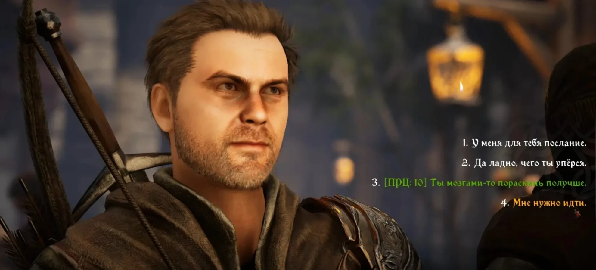 - При наличии 10 единиц Проницательности вы можете выбрать ответ «Ты мозгами-то пораскинь получше».
