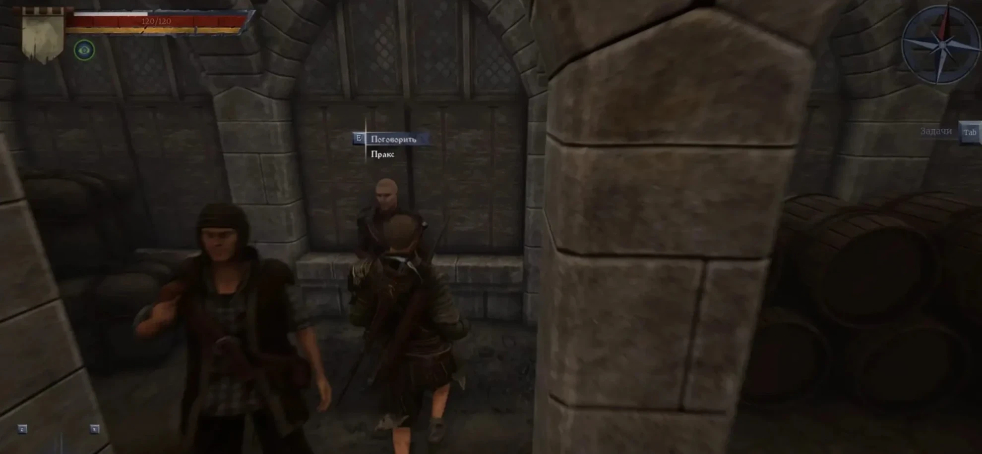Перейдите каменный мост, минуйте пригородное поселение и войдите в город через южные ворота. Сразу после загрузки локации направляйтесь к сооружению с арками. Под ними вы найдете Пракса. После разговора с ним, сообщите о послании, однако он откажется идти с вами.