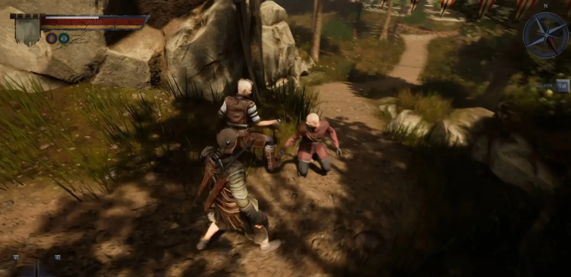 Вне зависимости от обстоятельств, Пракс согласится следовать за вами. Начните направлять его обратно к "Дому наёмников", уделяя внимание его перемещению. Игровые NPC склонны к непредсказуемому поведению, включая застревание в элементах окружения или вступление в схватки с враждебными существами, поэтому рекомендуется контролировать действия вашего подопечного.