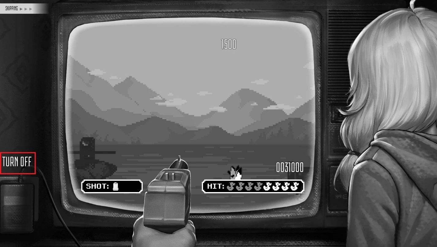 Это событие не связано с определённой сюжетной линией и может быть достигнуто при любом прохождении, независимо от выбранного пути: Зайчика или Одиночки. После событий в школе Антон возвращается домой и предлагает Оле провести время за видеоигрой. Этот эпизод даёт возможность получить сразу несколько достижений, исход зависит от ваших действий во время мини-игры. Чтобы избежать повторного прохождения, рекомендуется сохранить прогресс и поэкспериментировать с разными вариантами. Вы можете победить Олю, заработав больше очков во всех раундах, или просто прервать игру, выдернув вилку из розетки в левой части экрана. Оба варианта учитываются и приводят к получению достижения «Бяка». Однако для получения достижения «Утилизатор» необходимо уничтожить всех уток во всех трёх раундах мини-игры – только при этом условии достижение будет засчитано. В этом случае вы автоматически выигрываете у Оли и получаете достижение «Бяка».