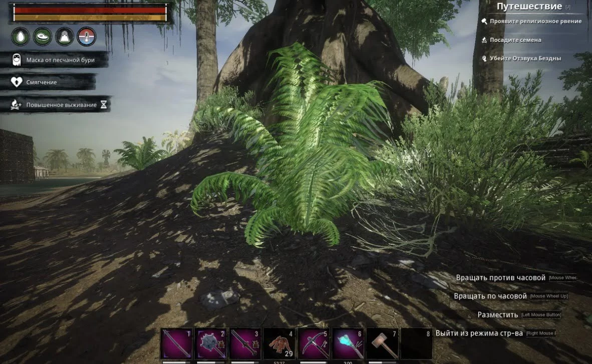 Растительные волокна - добываются со всех небольших растений в игре. Папоротники, ягодные кусты, уникальные растения, водоросли, все они дадут вам этот ценный ресурс. Волокна могут быть использованы для изготовления: бечевки (то же весьма ходового материала), одежды, луков и стрел, предметов интерьера, краски, и строительных блоков 1-го уровня. Также Растительные волокна всегда пригодятся в кулинарии, и в качестве корма для травоядных животных. На первых порах этот ресурс придется собирать руками, но затем можно будет изготовить серп.