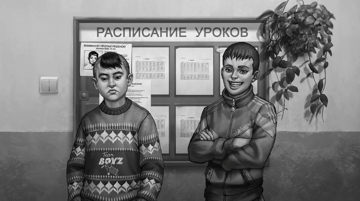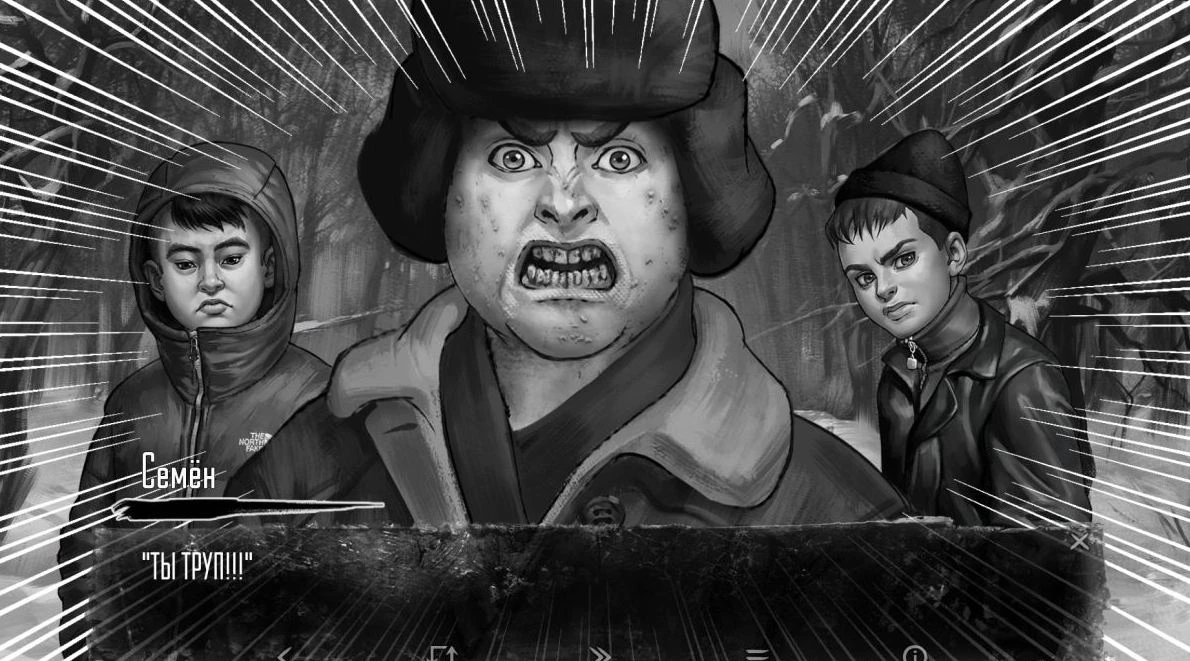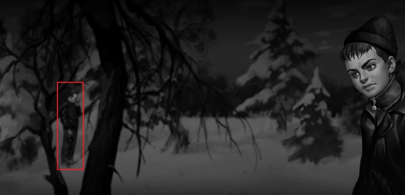 Когда после столкновения с Семёном в лесу вы двинетесь к гаражу в сопровождении Ромы и Бяши, уделите внимание фону. Во время их передвижения по экрану постарайтесь заметить человека с дефектом верхней губы. Легко не обратить на него внимания, но это критически важно для составления точного фоторобота.