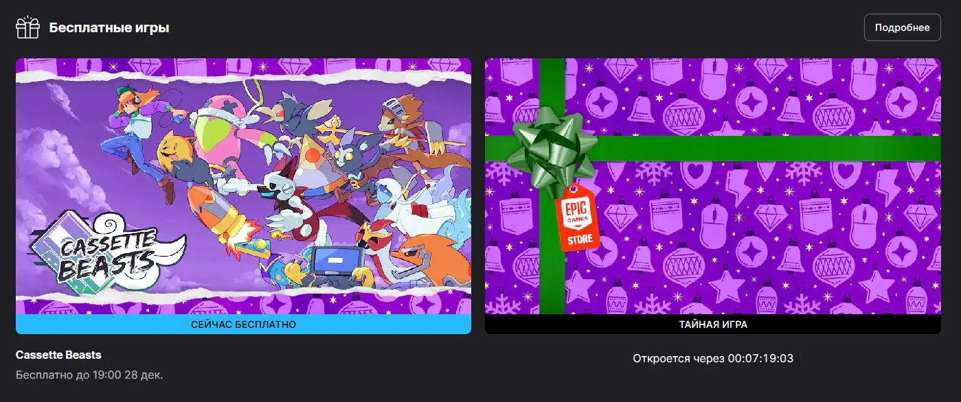 В рамках предновогодней раздачи Epic Games Store предлагает игру Cassette Beasts. Получить её бесплатно, включая пользователей из России, можно до 19:00 по московскому времени.