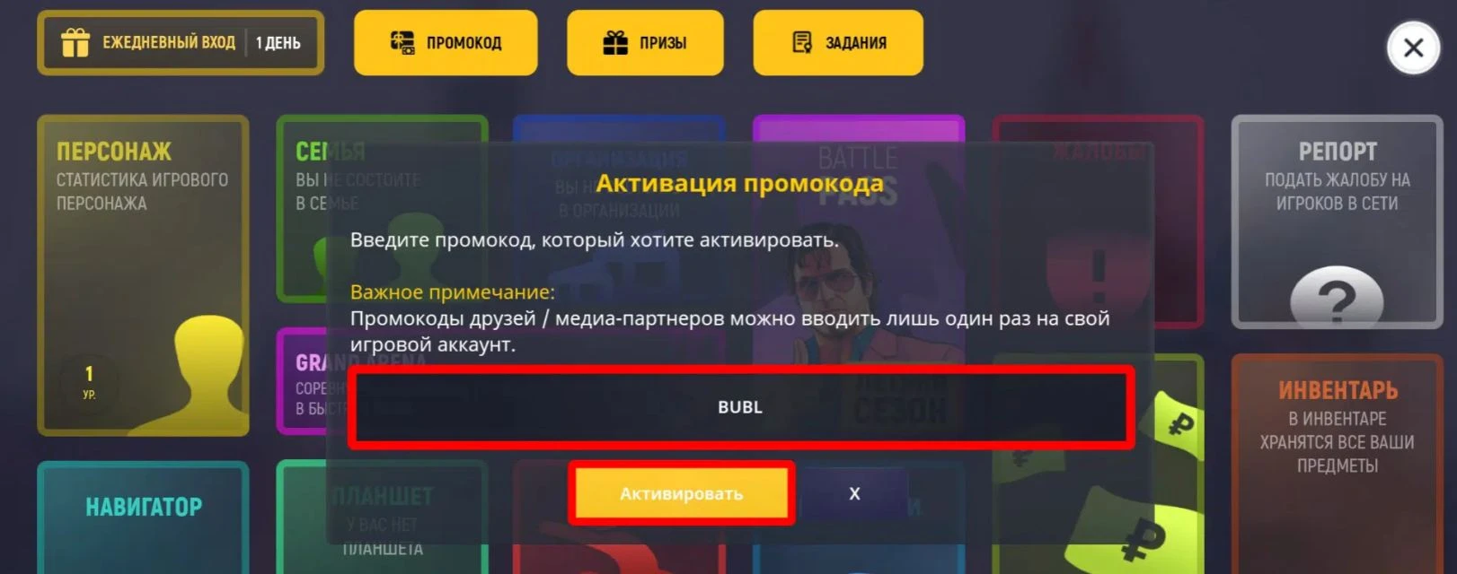 - Для активации конкретного партнерского кода рекомендуется создать нового персонажа, даже на том же сервере. Например, одни блогеры предлагают промокод на автомобиль в Grand Mobile, в то время как другие предлагают только VIP-статус и определенную сумму денег.