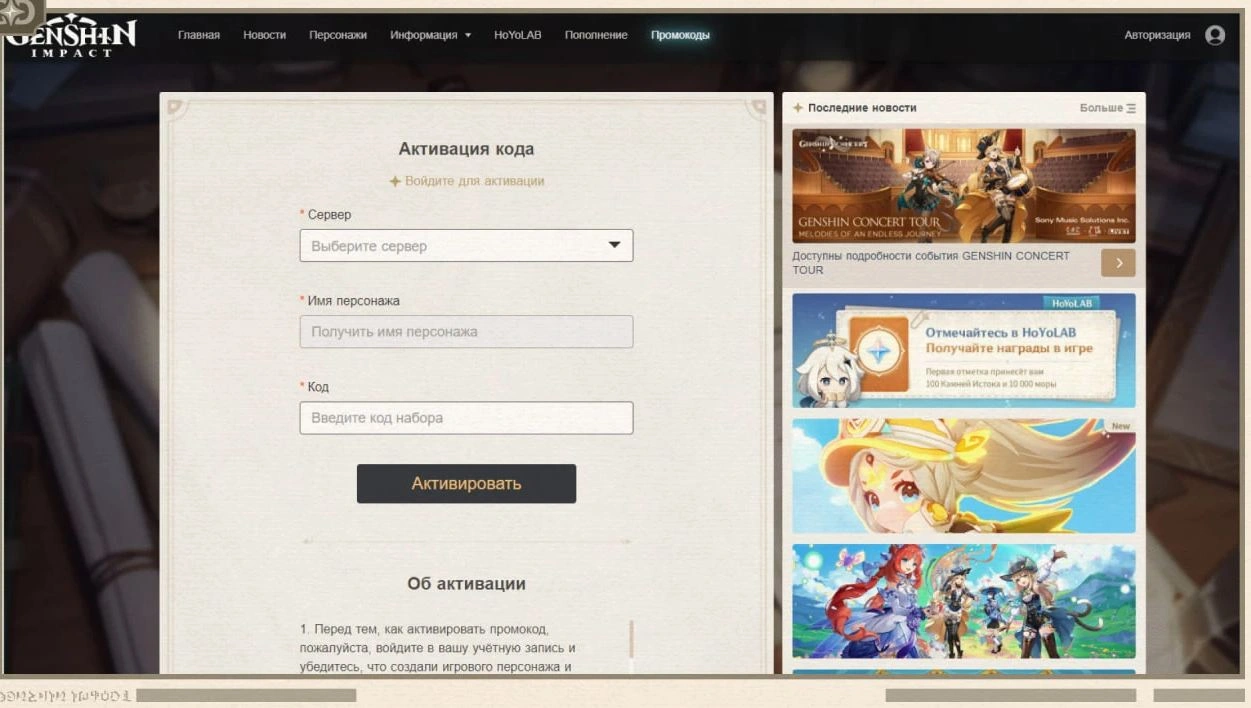 Если вы играете на смартфоне или планшете, коснитесь значка Паймон и перейдите в параметры аккаунта. Там найдите раздел для ввода кода и активируйте его. Введите один из предложенных промокодов и подтвердите активацию.
