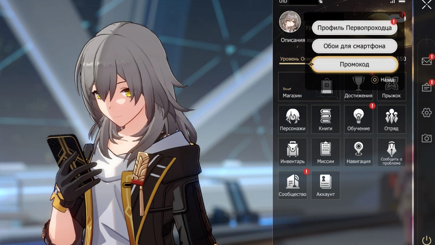Активация промокодов непосредственно в игре Honkai Star Rail