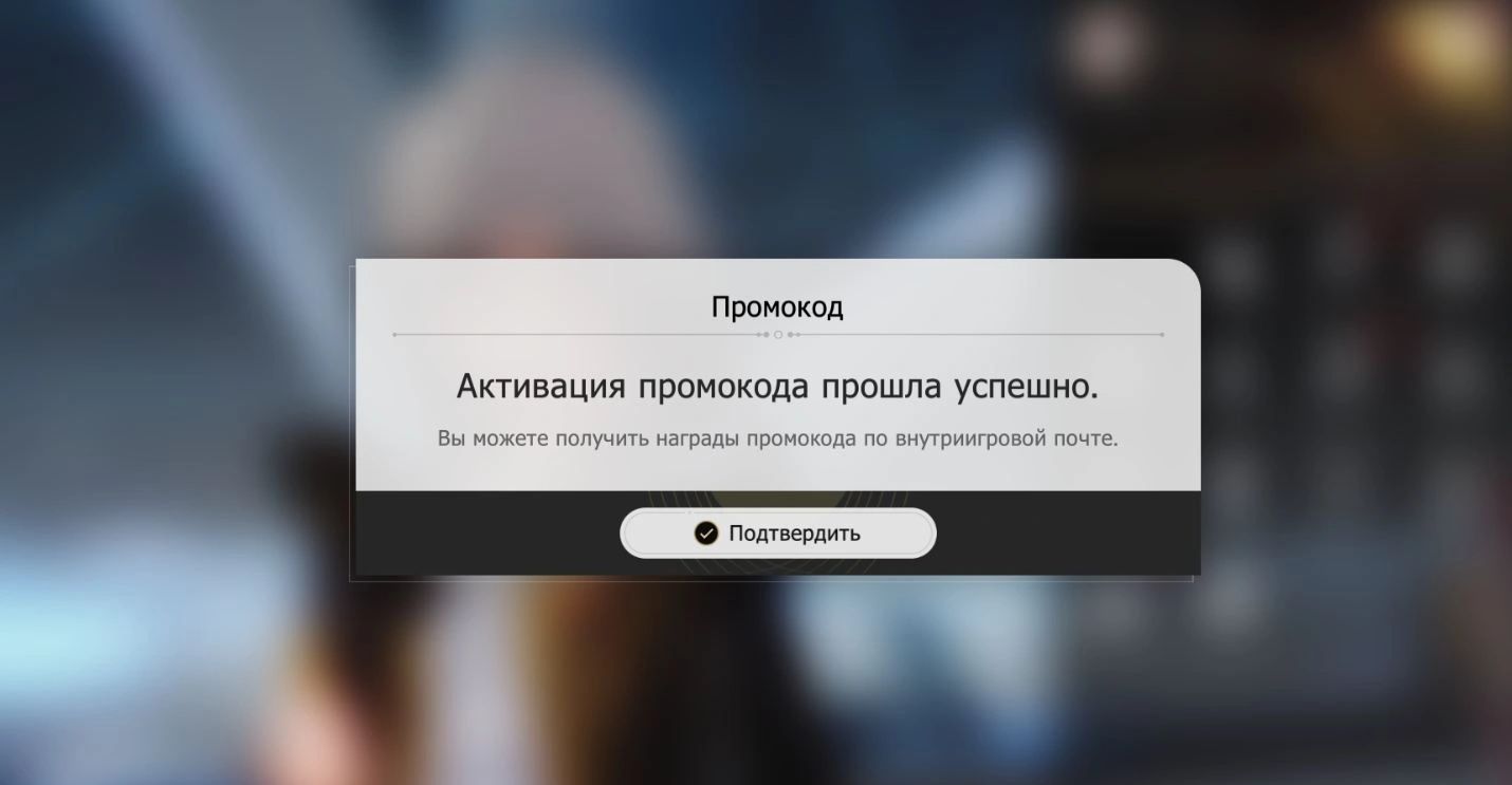 В случае успешной активации, награды по промокоду будут отправлены на внутриигровую почту вашего персонажа.