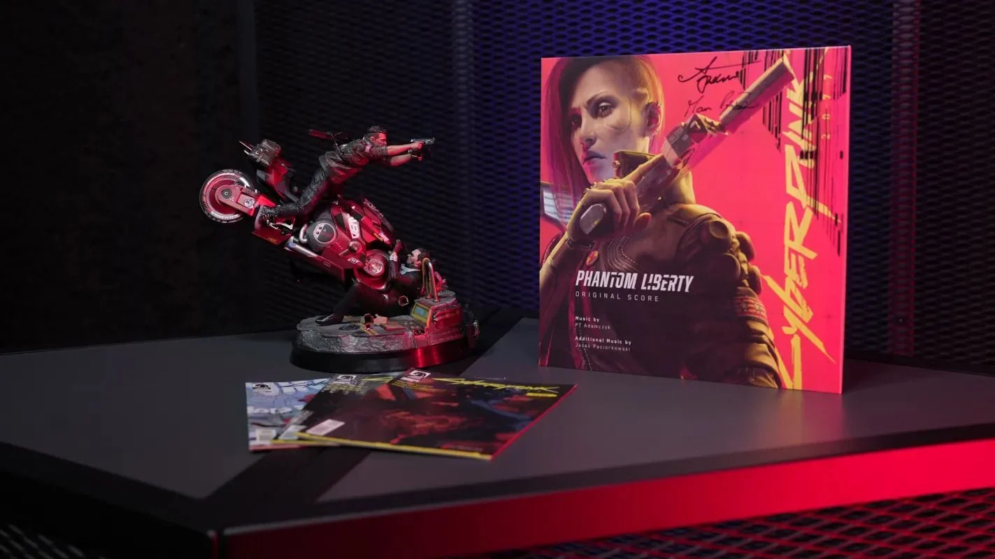 - 1-е место: Cyberpunk 2077: Phantom Liberty, виниловая пластинка с автографом, фигурка V, комикс с автографом.