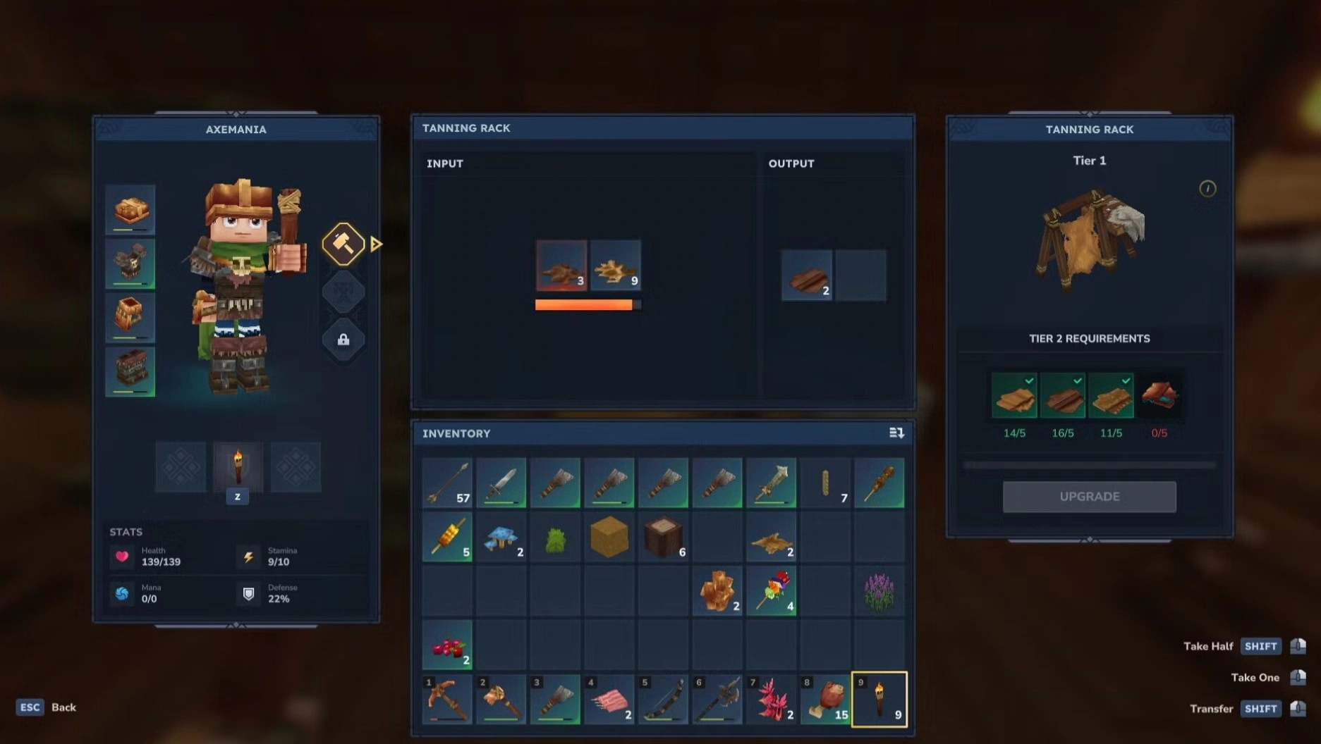 - Улучшение рюкзака: тяжелая кожа необходима в больших количествах для увеличения вместимости инвентаря.