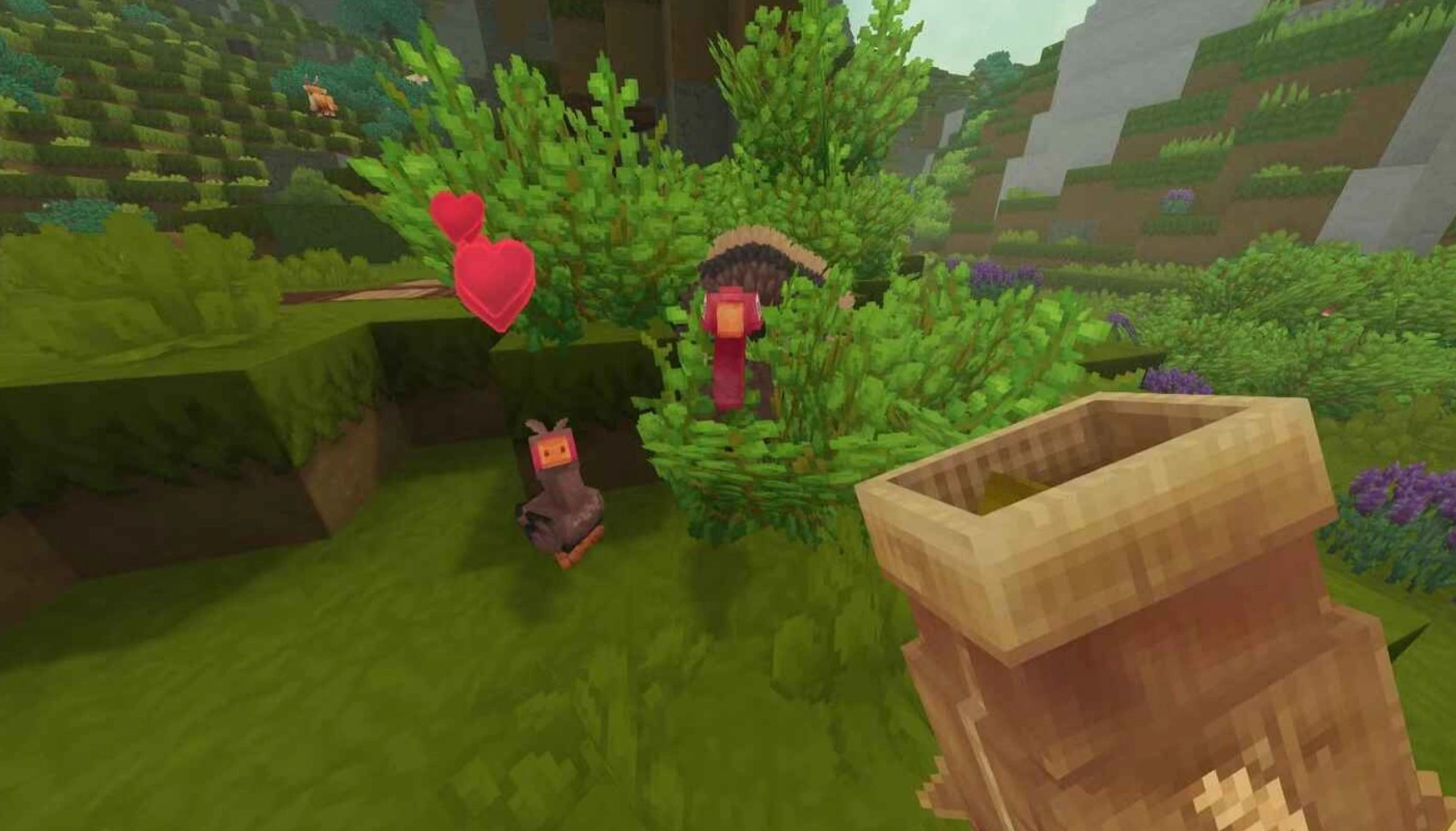 Успешное приручение сопровождается появлением частиц в форме сердец и уведомлением в чате, после чего животное признаёт вас своим хозяином и начинает следовать за вами. Прирученные коровы позволяют получить молоко по щелчку правой кнопкой мыши, овцы – шерсть при использовании ножниц, а куры – яйца и перья.