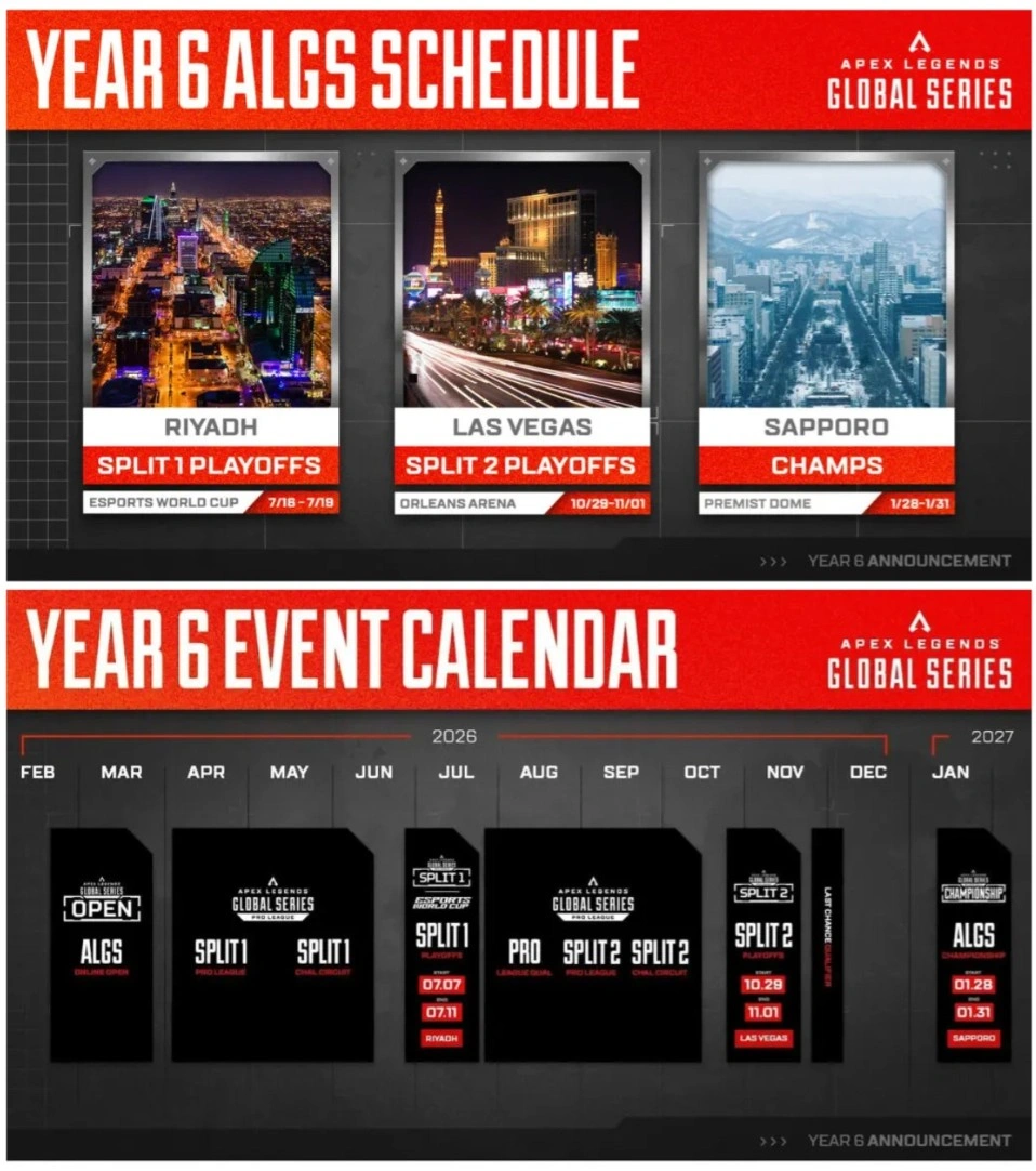 Компания Electronic Arts анонсировала программу шестого сезона Apex Legends Global Series, который претендует на звание самого обширного за всю историю киберспортивной лиги. ALGS сезона 2026-2027 займет почти весь год и достигнет кульминации в финале, который пройдет в Саппоро, Япония, с 28 по 31 января 2027 года. Общий призовой фонд сезона составит 7 миллионов долларов, при этом на каждое международное LAN-мероприятие выделяется по 2 миллиона.