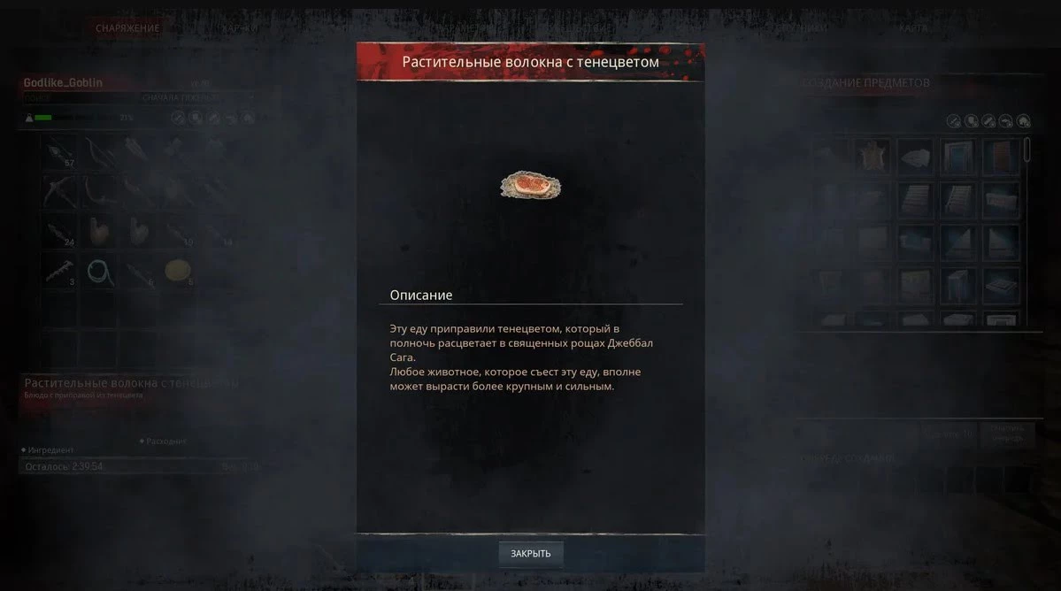 Растительные Волокна с Тенецветом, дадут по 7% на шанс роста Силы и Проворства. А лечат это сложно блюдо на 7 единиц здоровья.