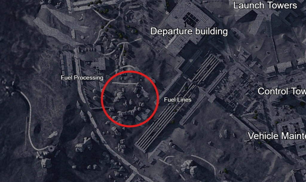 Бункер затаился между Топливопроводами и Цехом переработки топлива. Ирония в том, что для "скрытого" объекта он выглядит довольно заметно — здоровенная дверь, вмурованная прямо в землю.