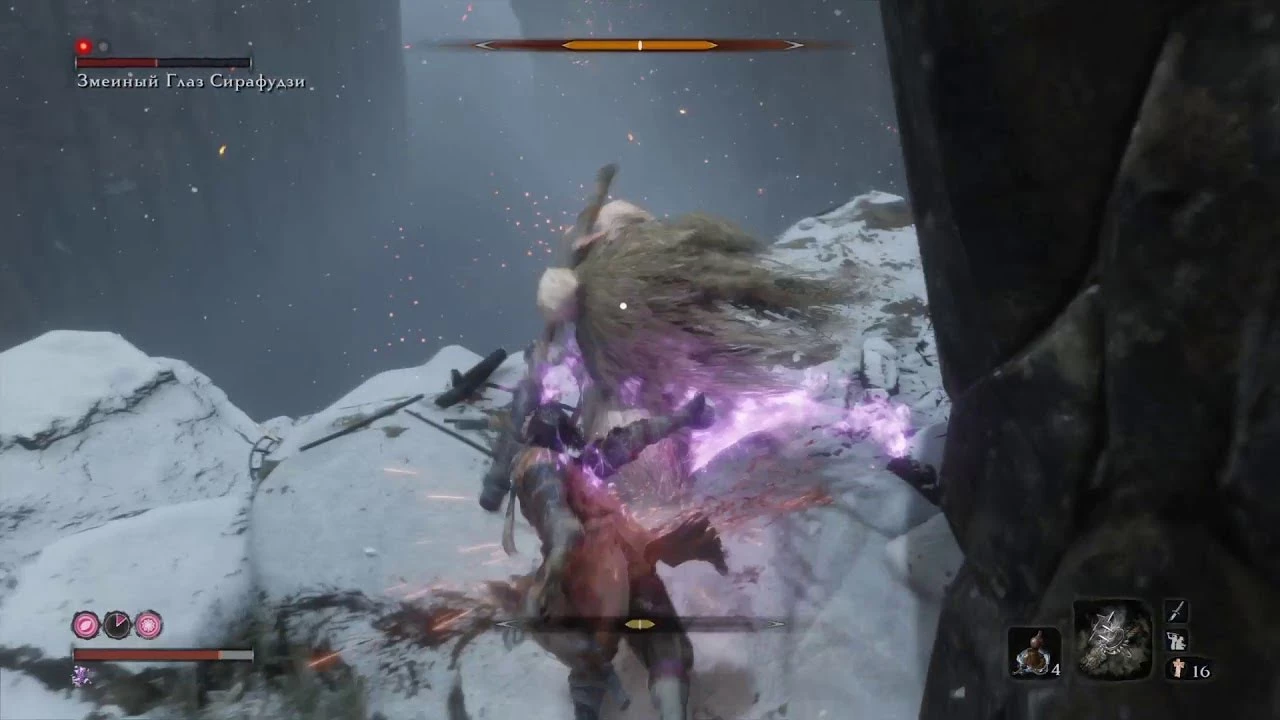 Змеиный Глаз Сирафудзи — очень подлый мини-босс, бой с которым может сыграть с вами злую шутку. Когда увидите босса в первый раз, не сражайтесь с ним, а просто пройдите его мимо, пока не доберетесь до идола «Крепость» в Опустившейся долине. Только после контрольной точки возвращайтесь к мини-боссу, предварительно убив всех стрелков. Первую жизнь отнимите при помощи стелса, а затем просто действуйте по таймингам.