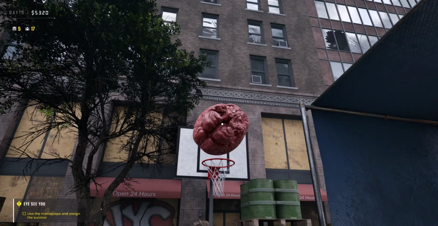 Условие разблокировки: Метните человеческий мозг в баскетбольную корзину. Чистый бросок - чистая совесть.