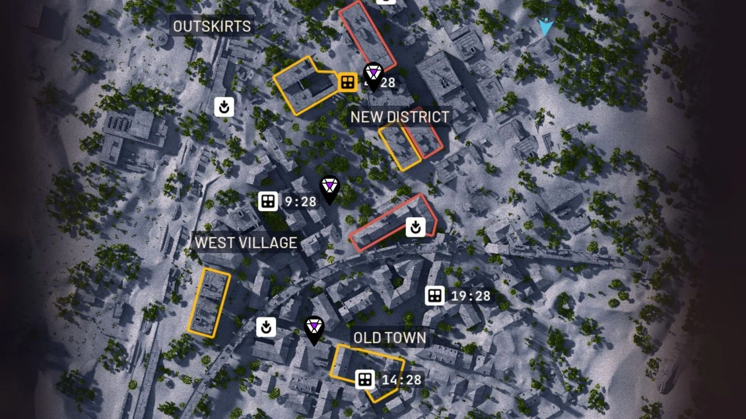 Ищите высокое здание парковки. Поднимайтесь по лестничным пролётам — там появится подсказка «Осмотреть местность». Нажимаете взаимодействие, чекпоинт закрыт.