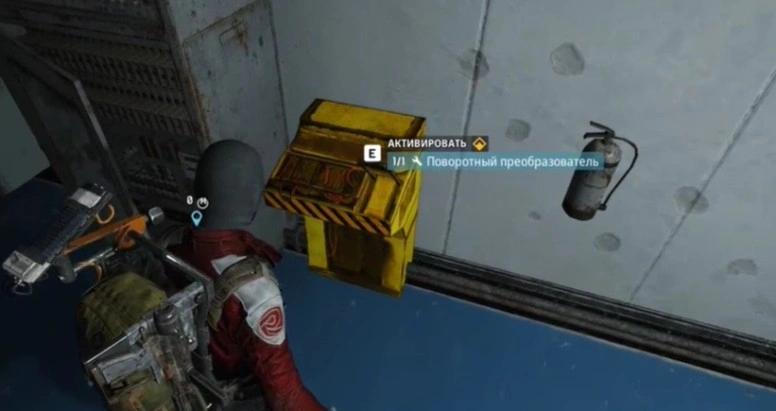 Стратегия поиска такая же: обыскивай Ассамблею, Бизнес-центр и Холл, а также другие точки с «Исходом», если они попадаются по пути. Будет здорово, если распылитель выпадет раньше трансформатора: просто сохрани его до последнего этапа.