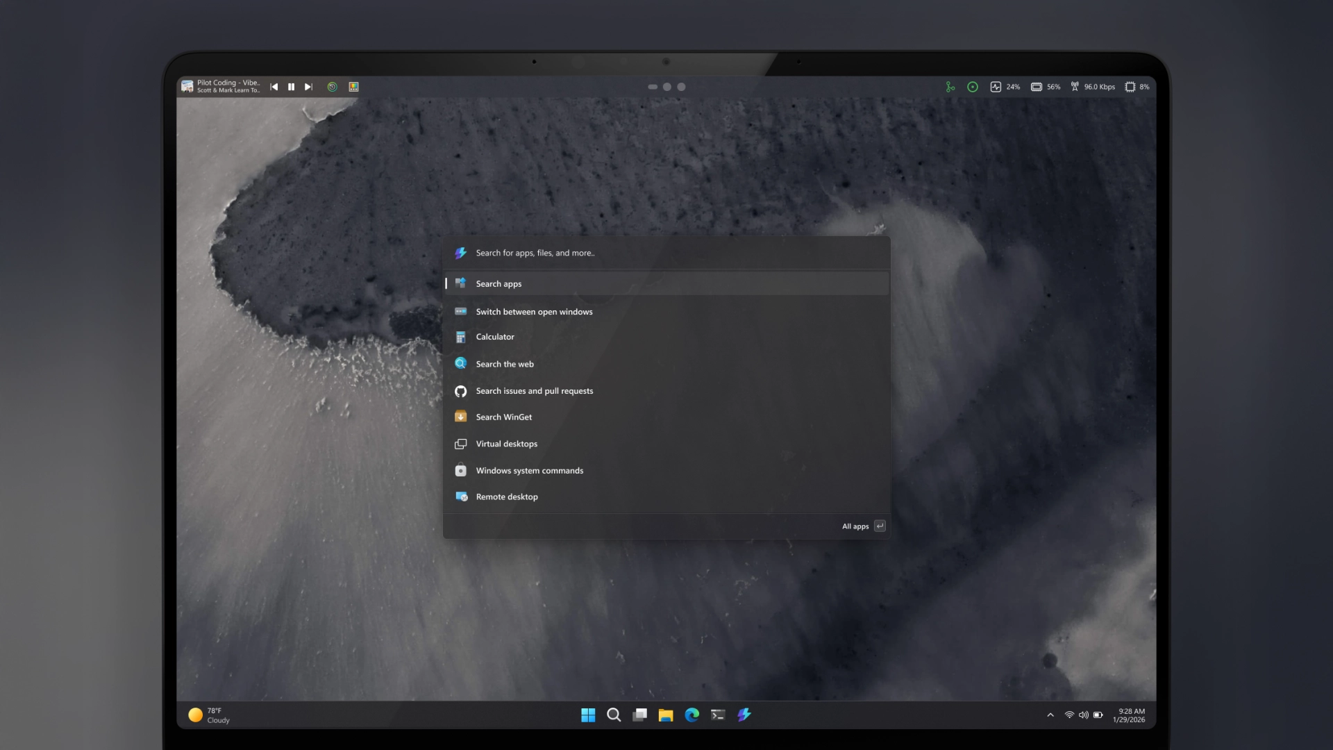 Панель функционирует как модульный командный центр, интегрированный с лаунчером PowerToys Run. На ней можно закреплять виджеты, кнопки управления мультимедиа, индикаторы загрузки процессора или быстрые действия. Меню полностью настраиваемое: его можно зафиксировать у любой границы экрана, превратив в аналог док-станции.