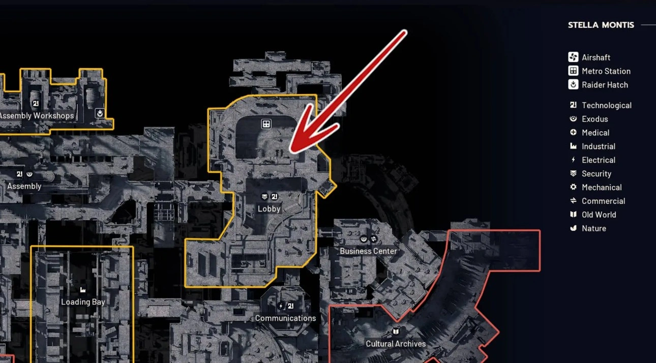 Первая цель – холл в северной части Стелла Монтис. Вам нужен верхний этаж и стойка регистрации, место перед пунктом охраны, где часто возникают стычки из-за скуки игроков.