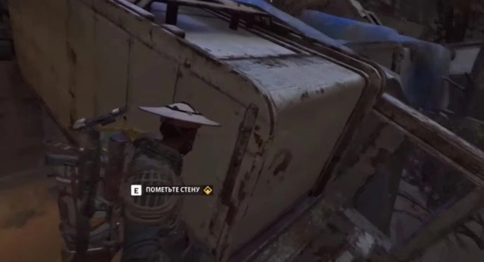 Добравшись до поляны, двигайся к центру, к участку, обращенному к "Контейнерному хранилищу". Там появится кнопка взаимодействия, которая отправит тебя на крышу близлежащего здания.