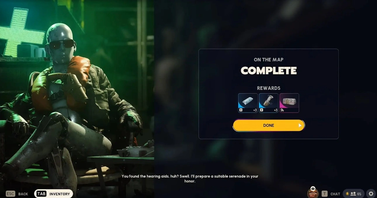 Взаимодействуй с его боковой стороной, и задание будет завершено. Затем отправляйся к ближайшей точке эвакуации и получи награду от Лэнса: 3 стерильные бинты, 3 устройства для моментальной перезарядки щита и Тактический модуль Mk. 3 (Лечение).