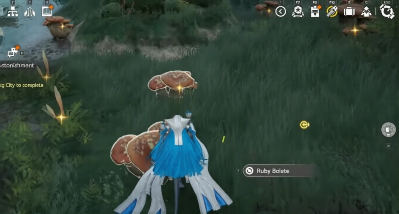 Рубиновый гриб произрастает исключительно в регионе Улин, в окрестностях водоемов к северу от Равнины небесного царя. Сбор возможен в двух местах: на берегу рядом с Протоптанным путем и вдоль реки к югу от Станции экологических исследований. В каждом месте обитания можно найти около 10 экземпляров.
