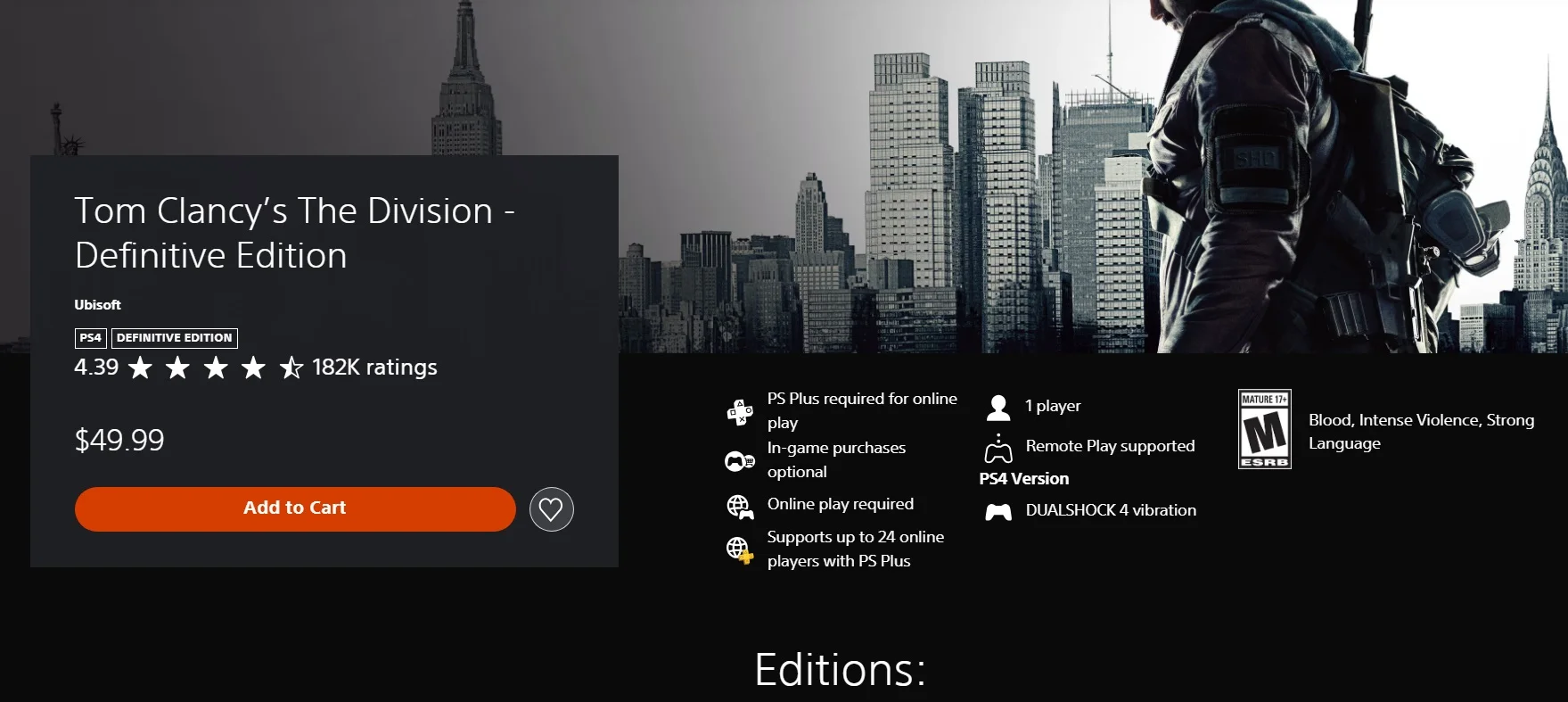 Хотя релиз обновленной версии Tom Clancy’s The Division был намечен на март, пользователи обнаружили её в продаже в цифровых магазинах Microsoft и PlayStation. При этом, в официальном магазине Ubisoft Store на момент подготовки материала игра еще не была доступна.