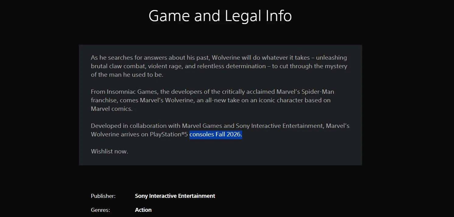 Внимание интернет-сообщества привлекло появление информации о Marvel’s Wolverine в PlayStation Store для Латинской Америки. В представленном описании указано, что дата выхода игры намечена на третий квартал 2026 года, что охватывает период с июля по сентябрь.