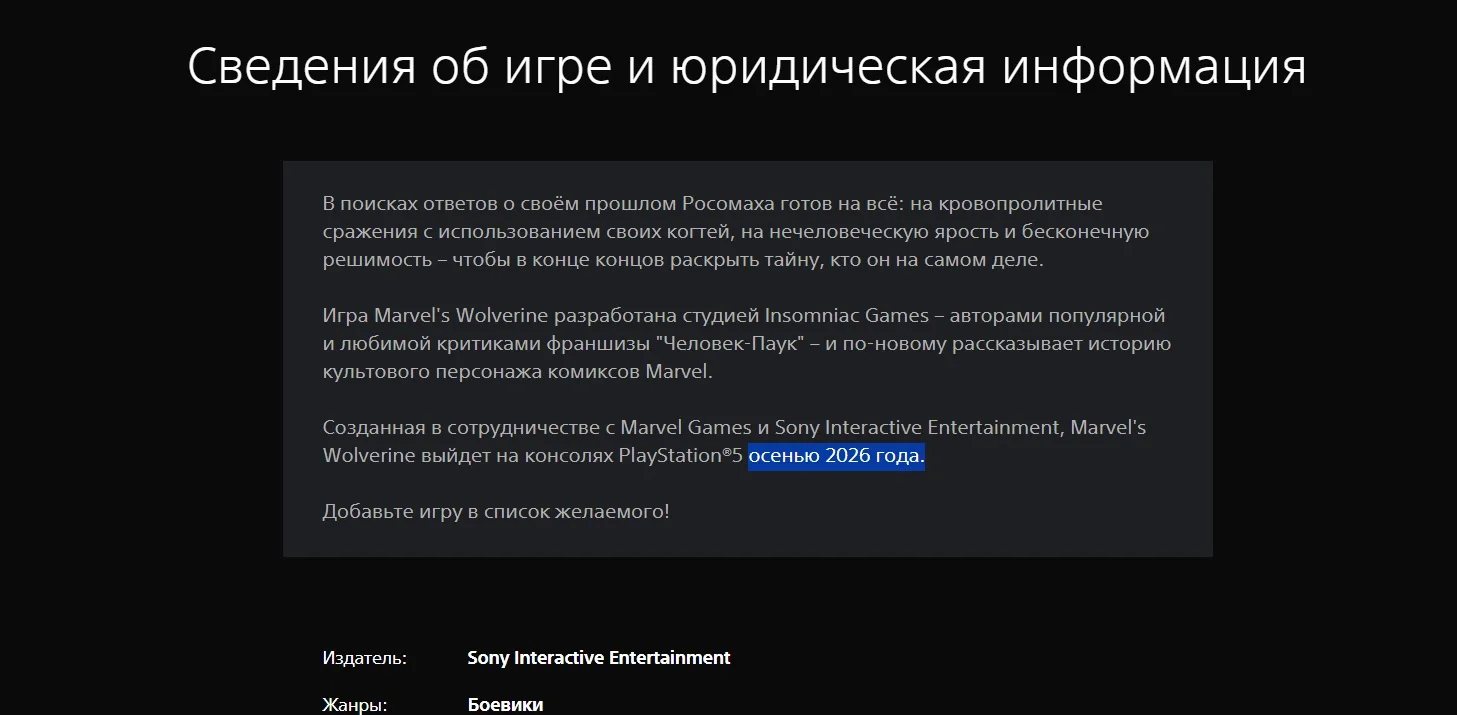 Несмотря на то, что в других региональных версиях PlayStation Store официально указана осень этого года как время релиза Marvel’s Wolverine, эта новая информация заставила многих предположить, что игра появится именно в сентябре.