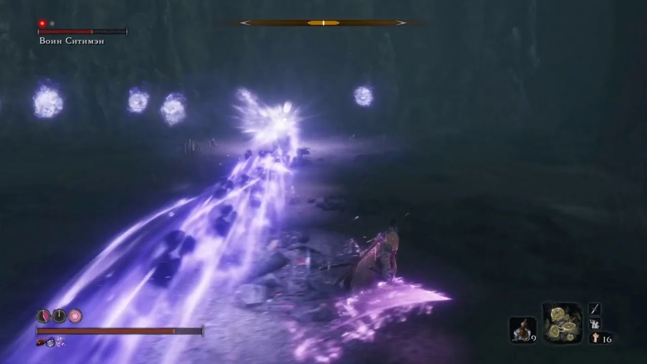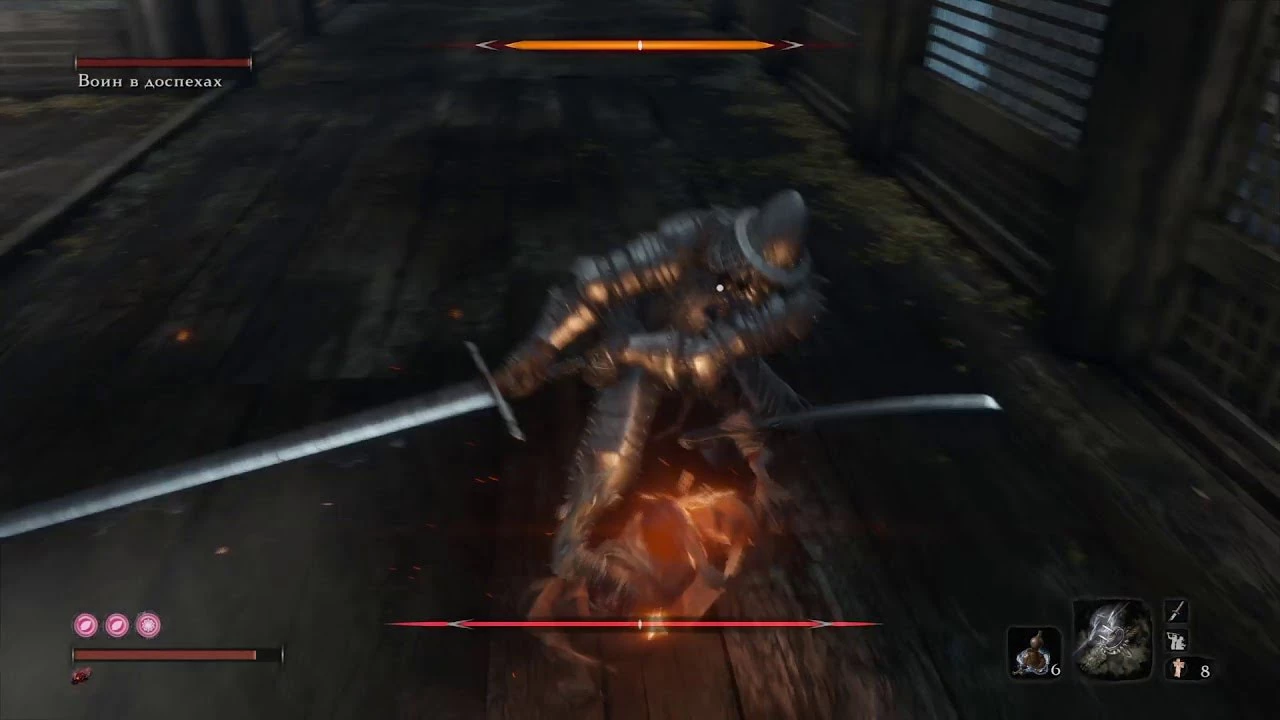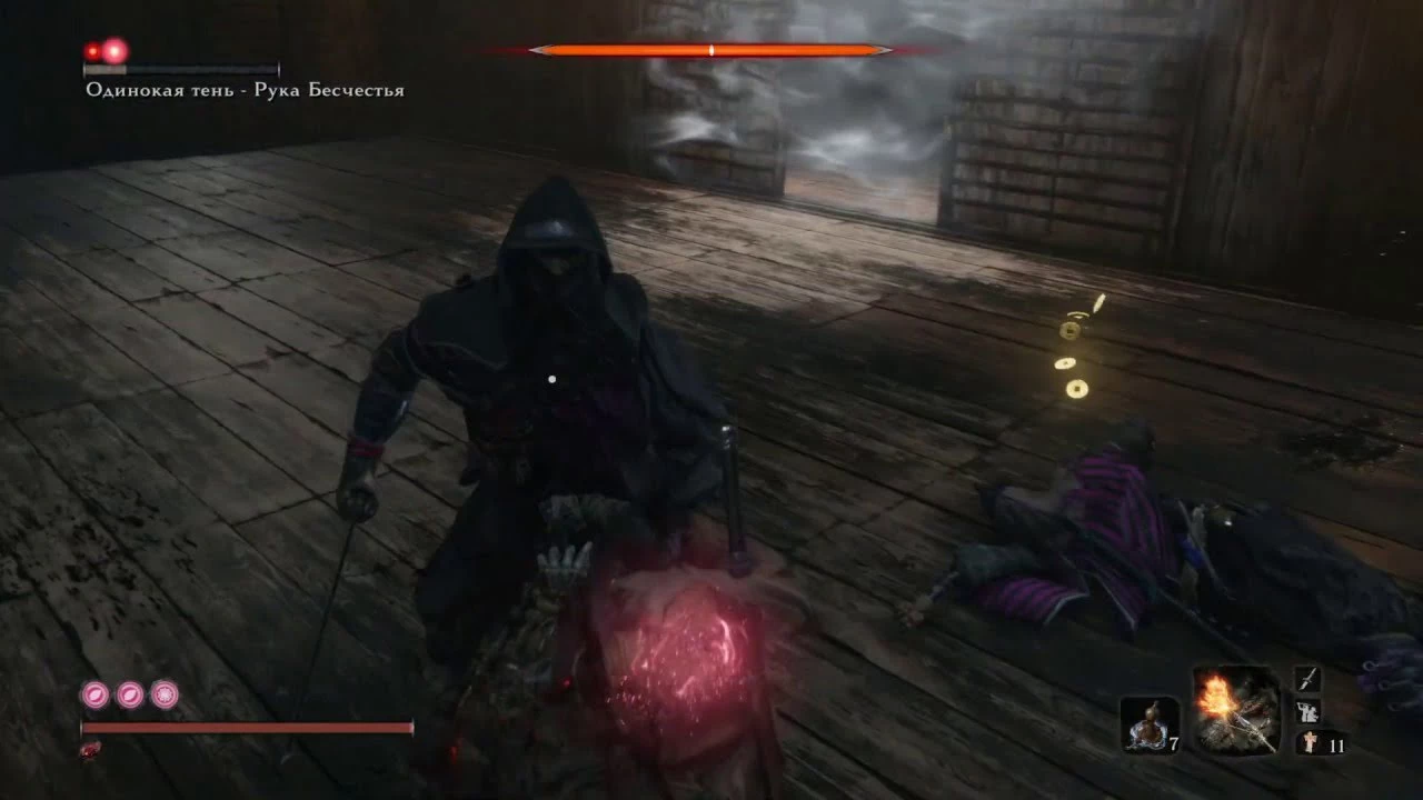 Проще всего убить этого босса — отнять у него всю концентрацию. Вовремя парируйте удары и наносите контратаки. Можно использовать «Атаку тени».