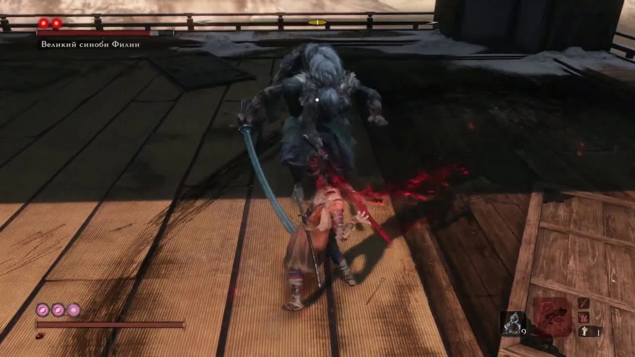 Вот, по-настоящему сложный босс, на убийство которого у вас, скорее всего, уйдет уйма времени. Во-первых, у этого босса четыре фазы. В первой вы будете сражаться против Гэнитиро, убить которого несложно. Просто парируйте атаки и заполняйте концентрацию. Со второй фазы начинается самое сложное — Иссин. Ваша задача — уклоняться от сильных ударов и парировать обычные атаки.