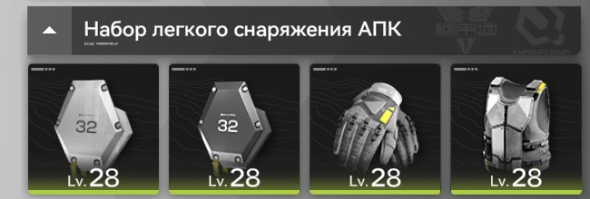 Все наборы доступны с 10 по 28 уровень (обычные)