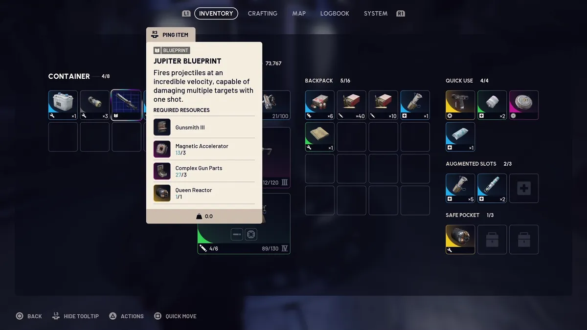 Но учти: чертежи — это только полдела. Чтобы скрафтить Jupiter или Equalizer, тебе нужно будет убить Королеву, получить её реактор и прокачать оружейный стол до 3 уровня.