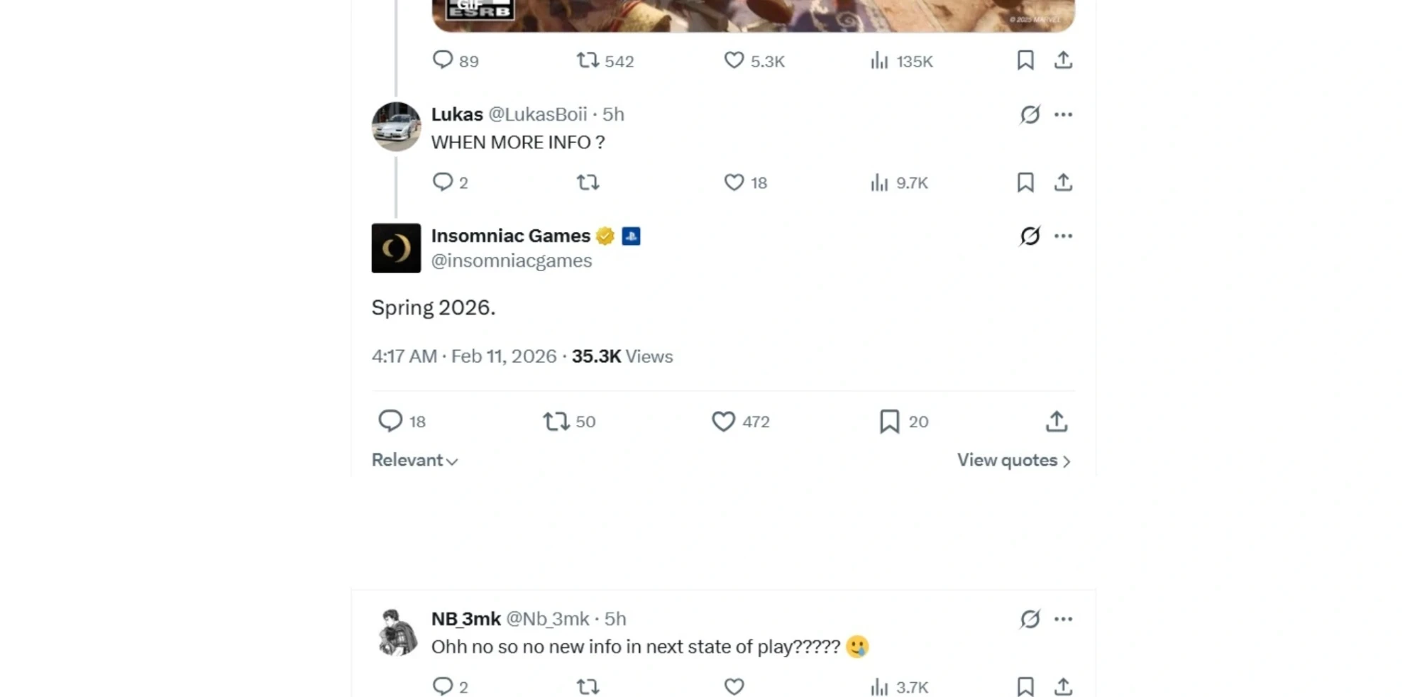 Ожидаемое шоу State of Play, возможно, не оправдает надежд фанатов, ждущих анонсов по Marvel’s Wolverine. Разработчики из Insomniac Games не меняли своей позиции: подробности о проекте они по-прежнему планируют раскрыть весной.