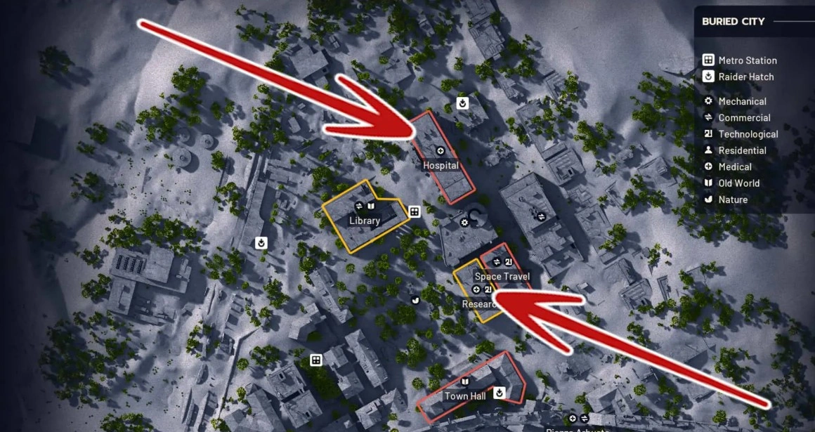 Здание «Исследования» также велико, но вероятность редких находок там ниже. Поэтому оптимальная стратегия: сначала тщательно обыскать «Госпиталь», а затем, при наличии времени и возможностей, перейти к «Исследованию».