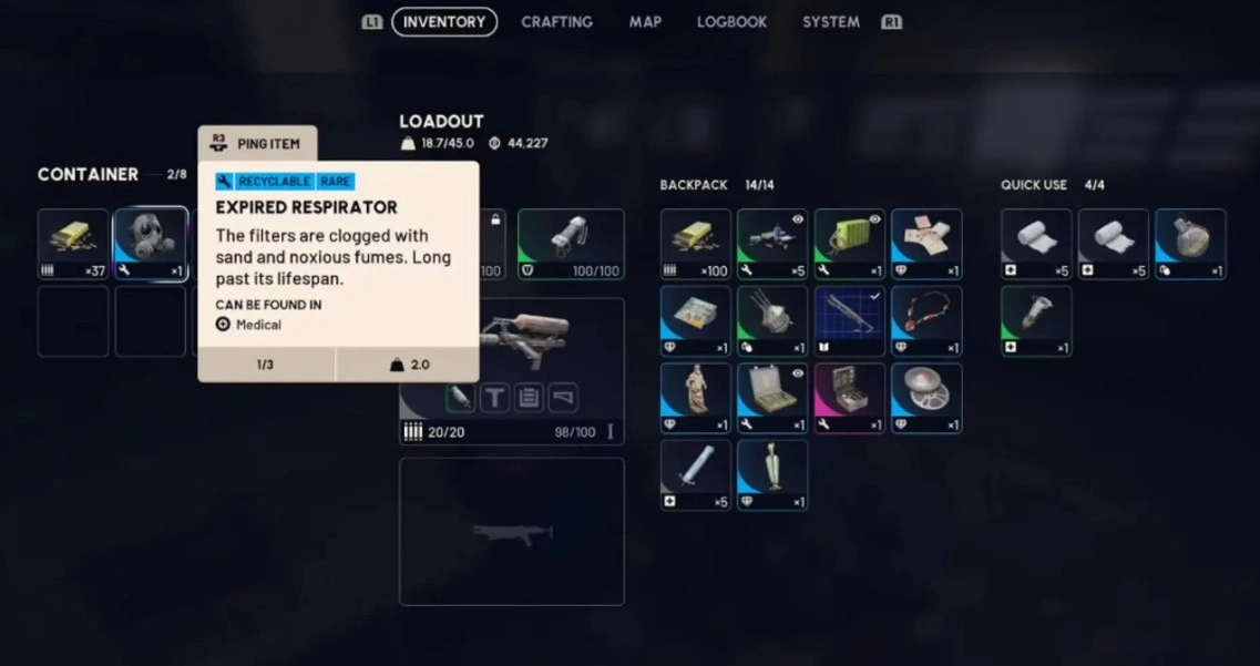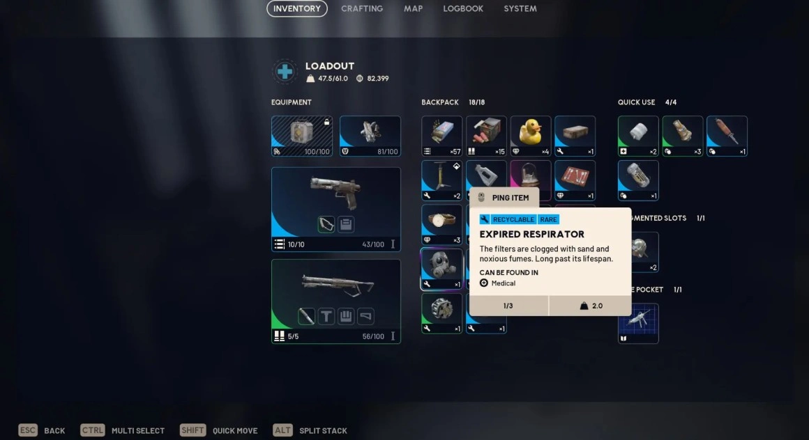 Самое важное — исследуй все без разбора. Этот респиратор нередко маскируется под "обычный хлам", пока он тебе внезапно не понадобится.