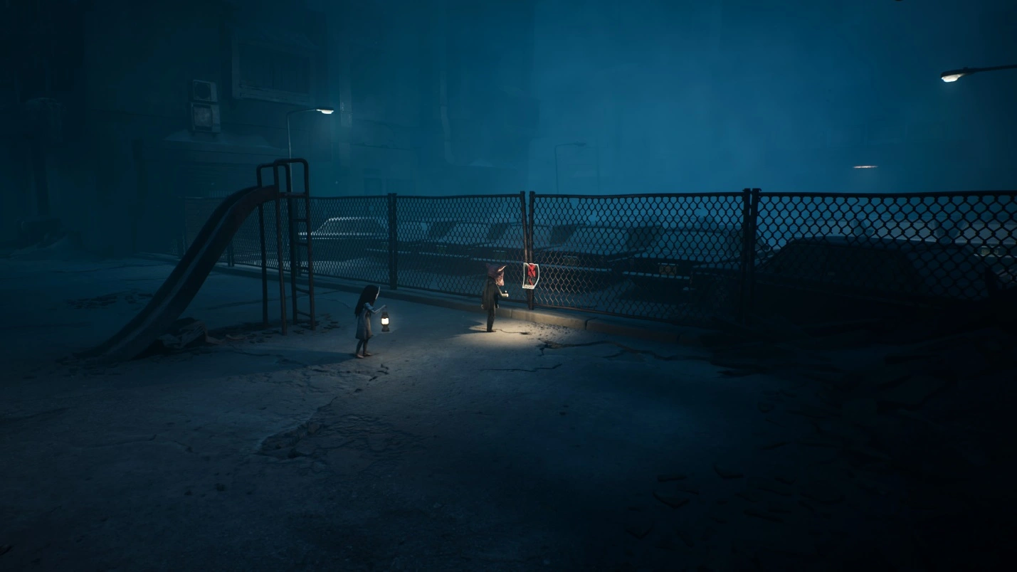 Покинув кинотеатр, вы пройдете через еще один дом и выйдете на улицу, где находится детская площадка. В центре стоит диван — присядьте на него. Если вы уже использовали этот диван, другие объекты на площадке, на которые можно сесть, не будут засчитаны.