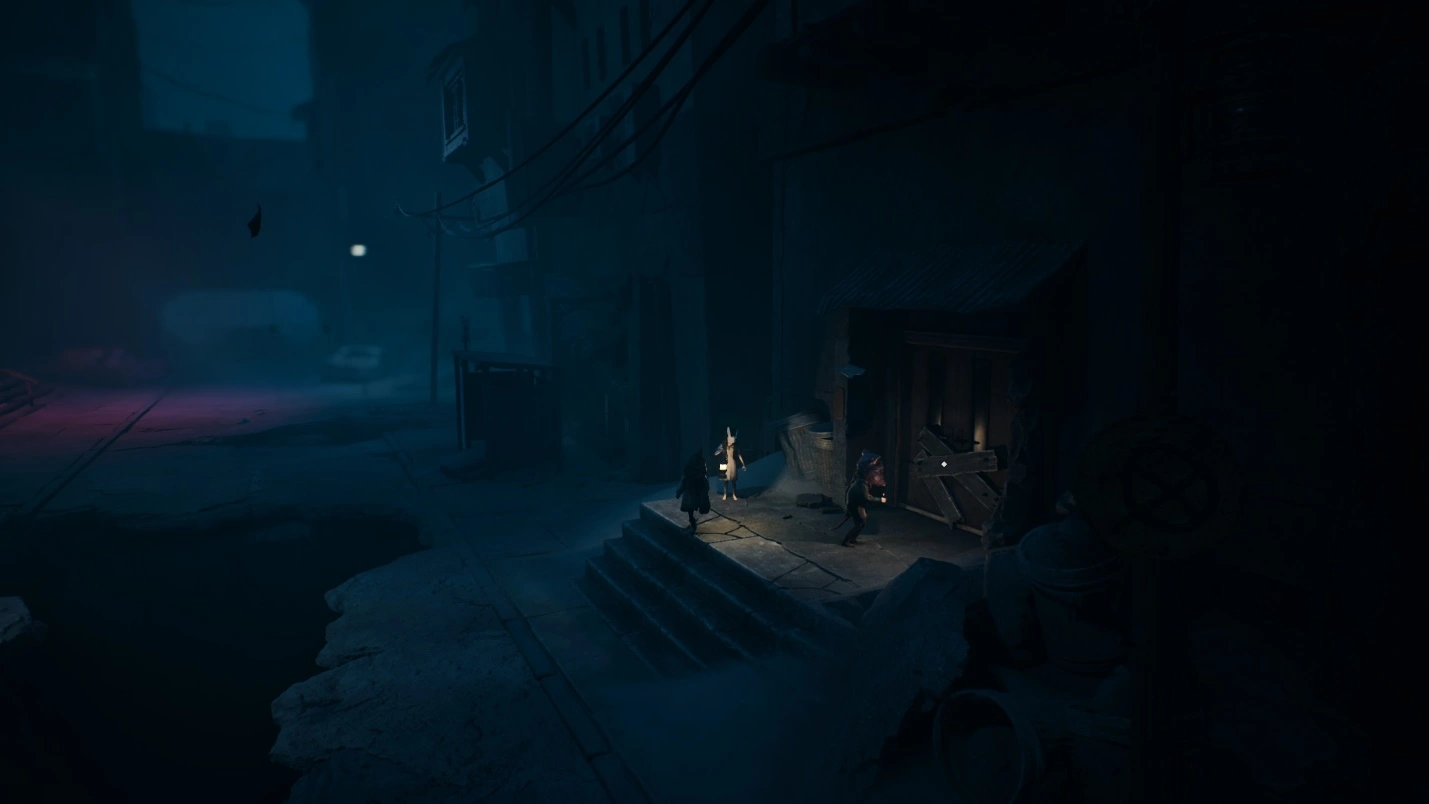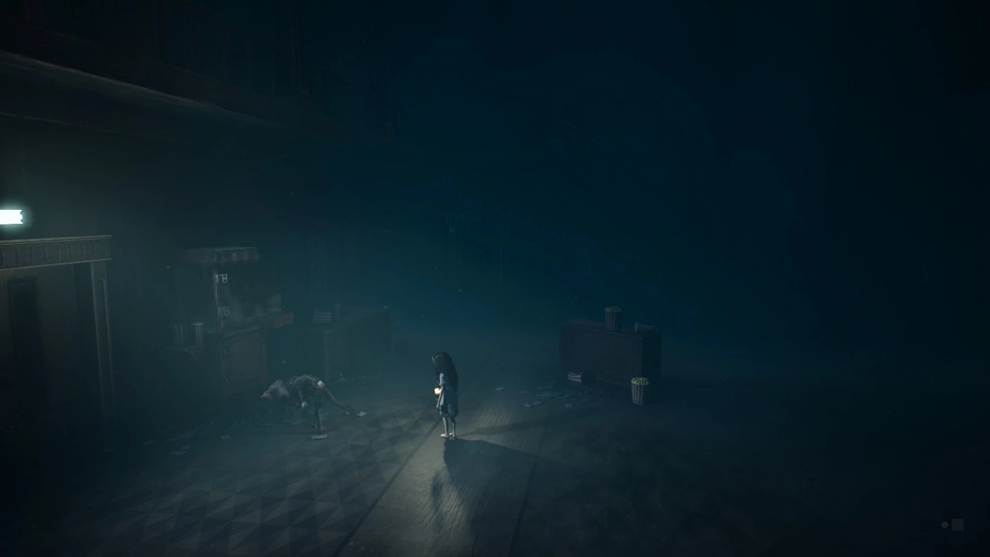 Выйдя из кинотеатра, направляйтесь к разрушенному зданию справа. Под оранжевым дорожным конусом спрятано существо — оно попытается убежать. Следуйте за ним в нижнюю правую часть локации, к двери, заколоченной досками. Взломайте ее, победите существо под конусом и заберите конус с его тела.
