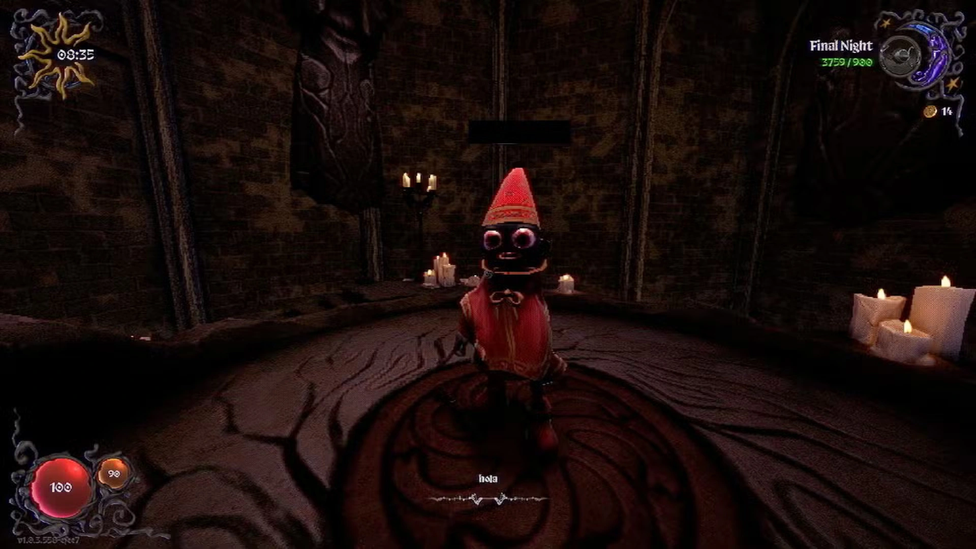 - Внешний вид: тёмное помещение, заваленное свечами, с люстрой над круглой платформой