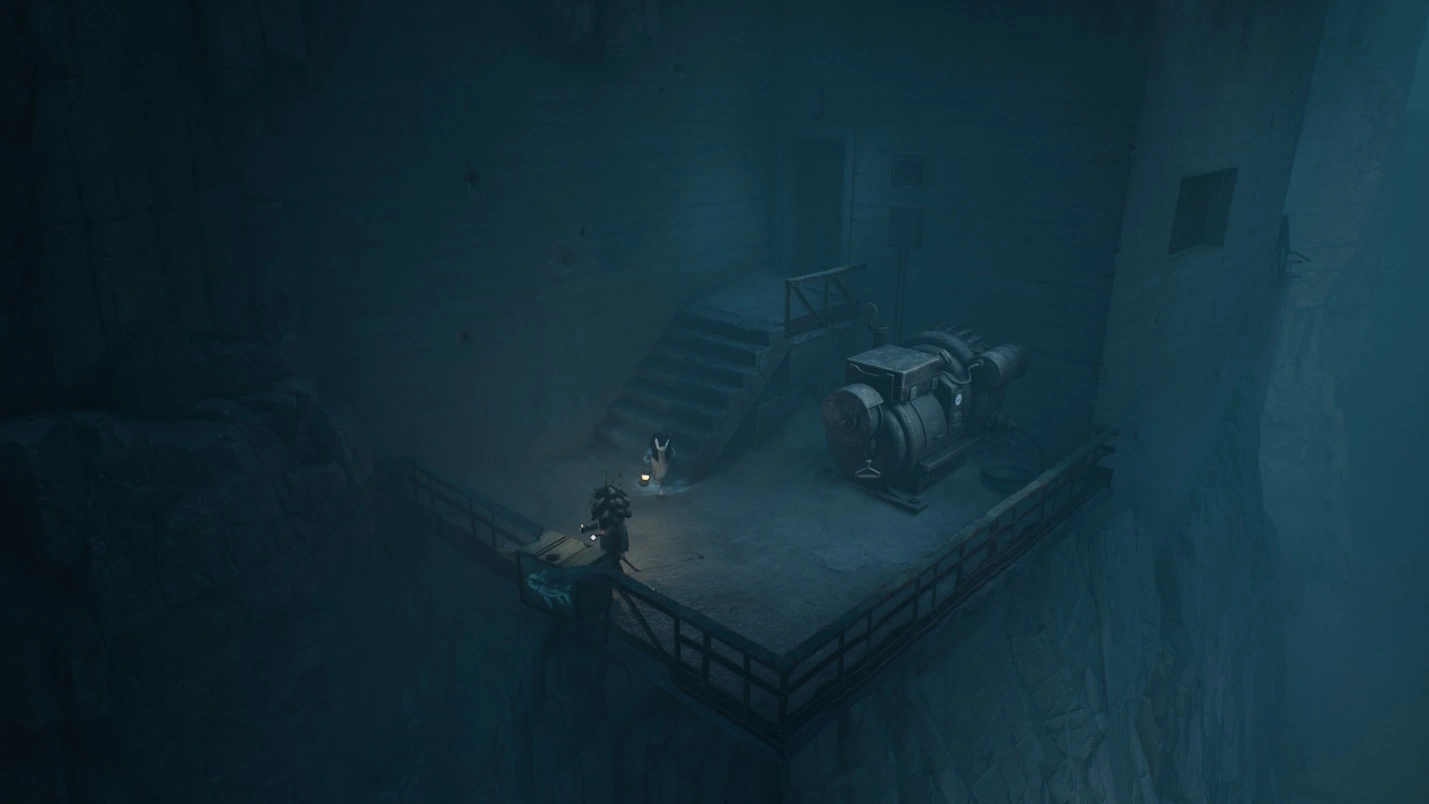 Столкновение с аварией в тоннеле во время движения на военном грузовике приведет вас в диспетчерскую. Там предстоит головоломка: панель с лампочками, четыре кнопки и рычаг. Для начала, пройдите через правую дверь, чтобы запустить генератор. Не забудьте столкнуть небольшой ящик с у выступа слева. Вернитесь внутрь, решите задачку и спускайтесь на берег, к вашей старой лодке. А та самая живность появится у левого края пляжа, выбравшись из того самого ящика, который вы опрокинули. Устраните её, чтобы заполучить маску в форме рыбьей головы.