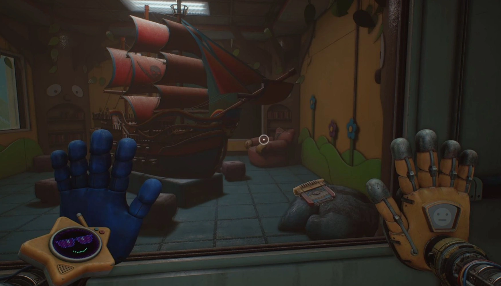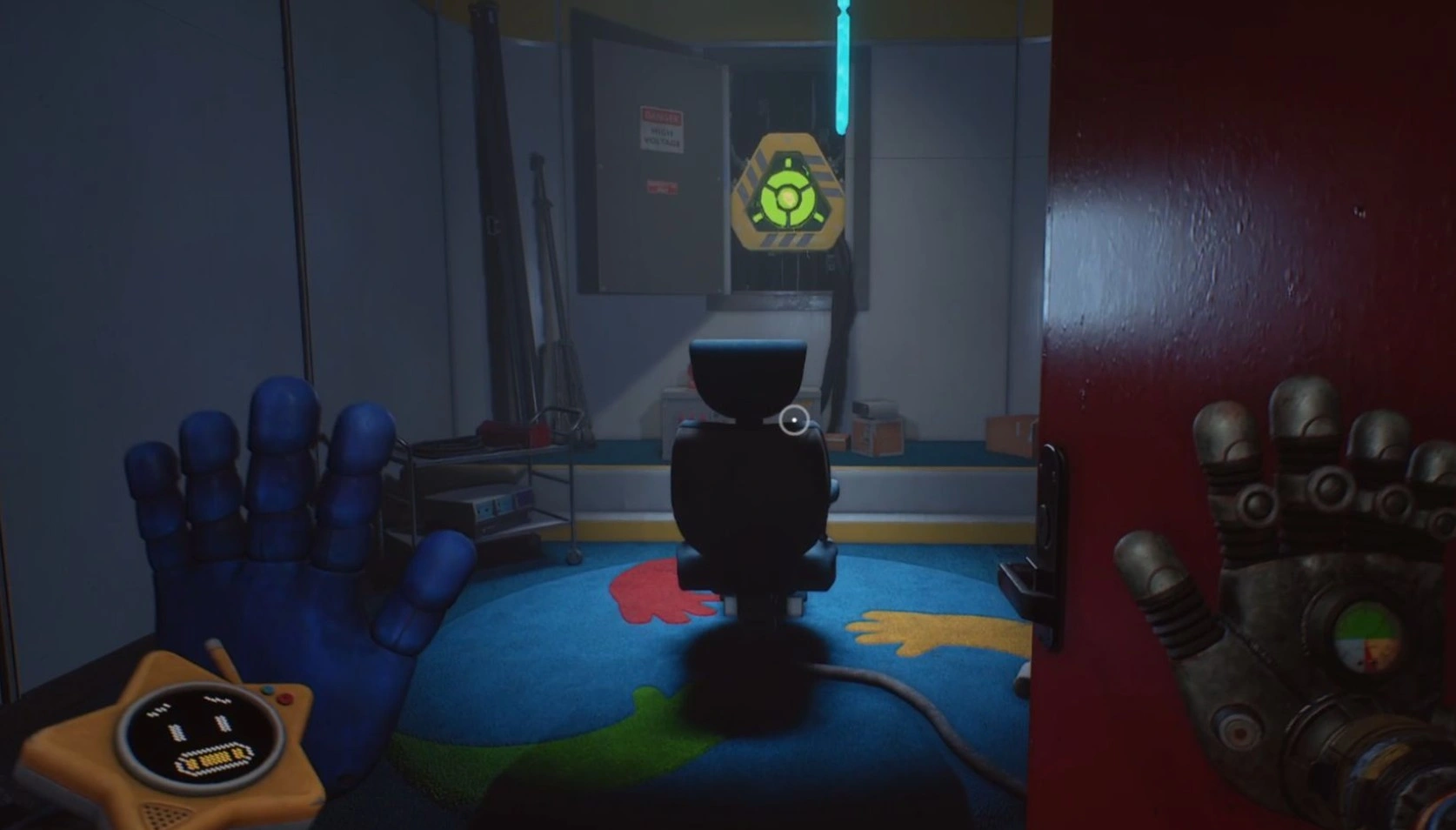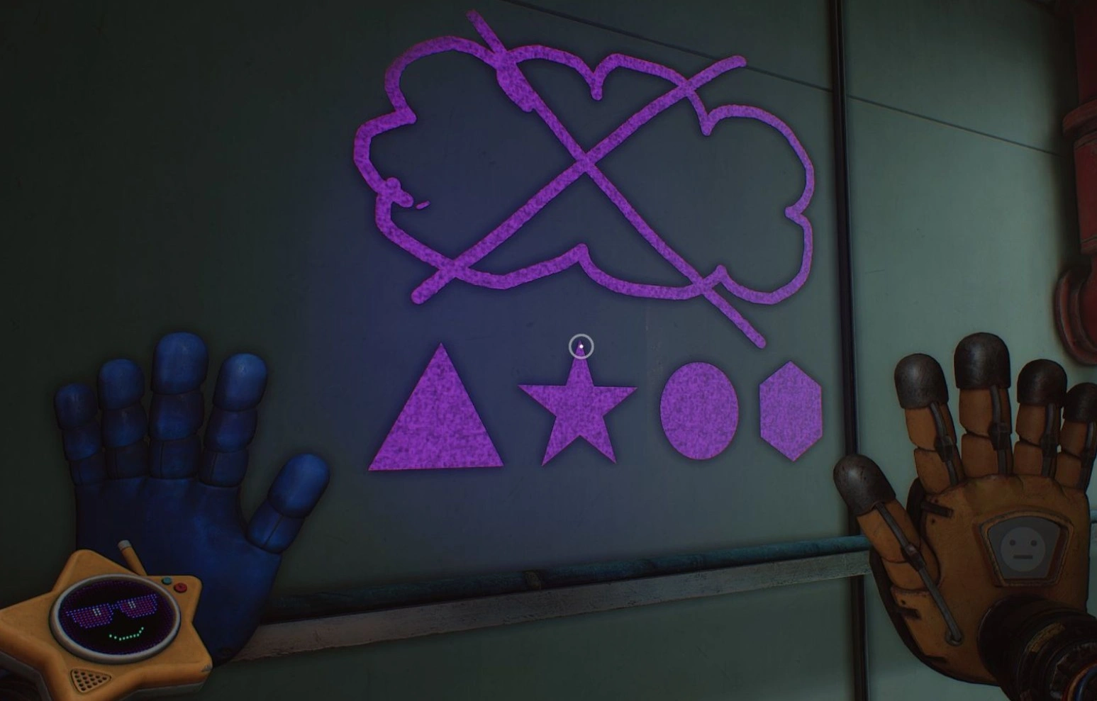 Чтобы обнаружить финальный чип, требуется вернуться в холл, заполненный субстанцией Поппи-Геля. Там следует разыскать синюю дверь с портативным сканером руки и войти в секцию с головоломками. Перед тем как приступить к поиску, необходимо убедиться, что ультрафиолетовый фонарь Глоуби активирован — без него решение задачи будет невыполнимым.