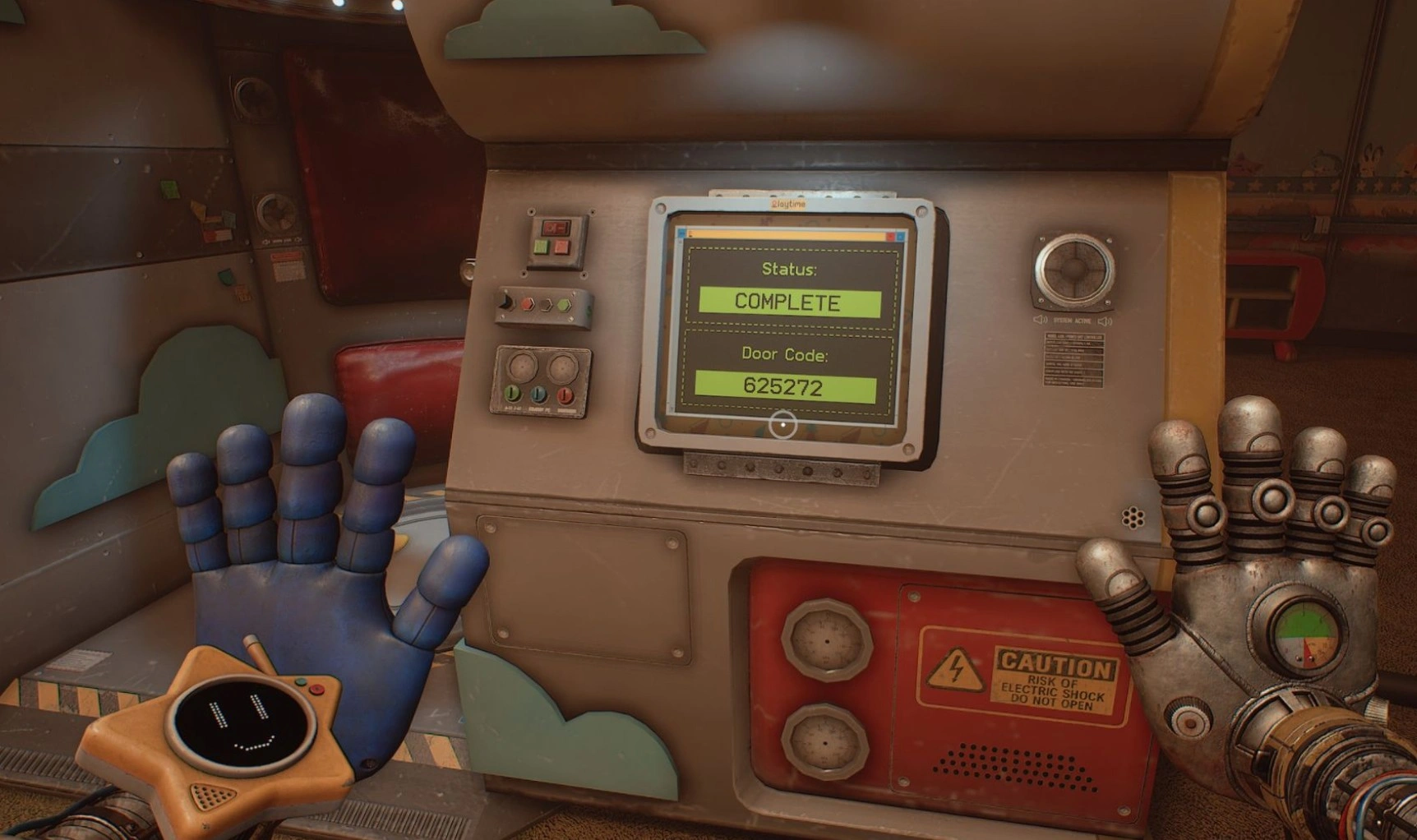 Пятая глава Poppy Playtime значительную часть своего времени посвящает поискам пути к отделению Реанимации. На этом пути игроки обнаружат необычную машину, украшенную выпуклыми глазами. За этим механизмом находится массивная дверь, требующая шестизначный код для открытия.