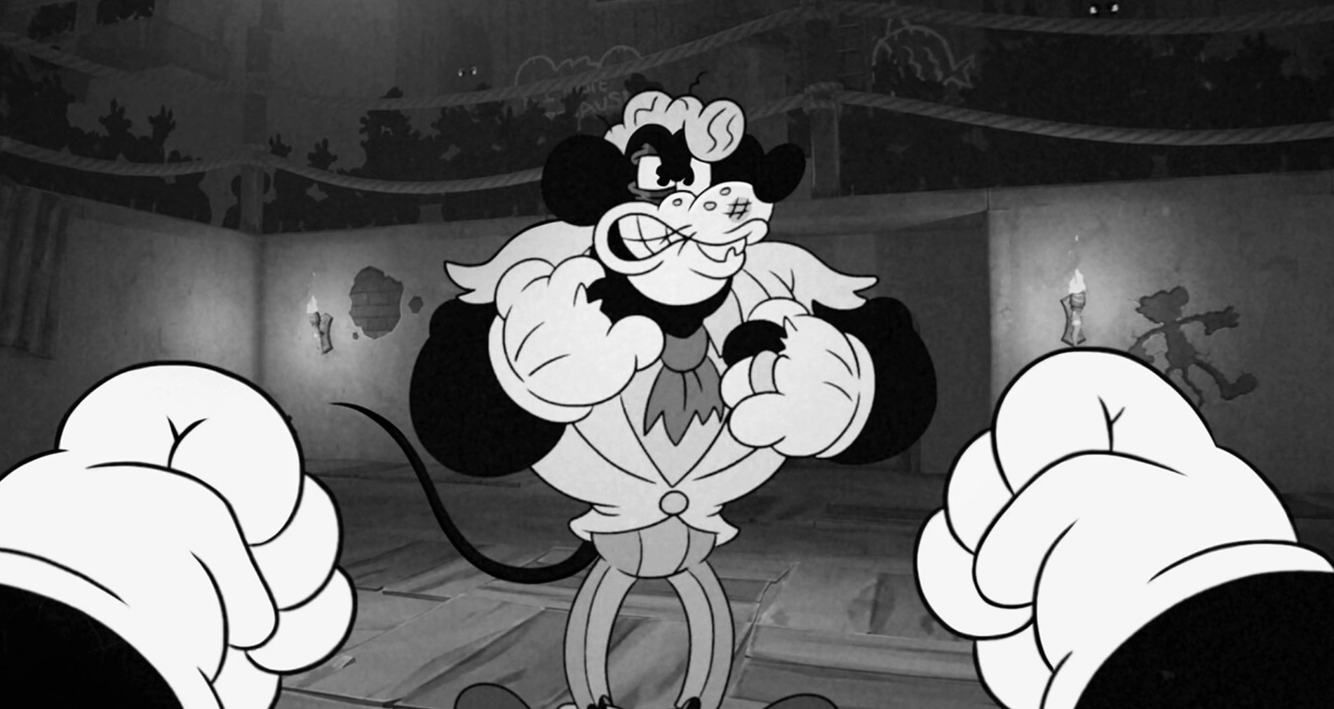 - Стилизованная чёрно-белая графика и «ручная» анимация в духе мультфильмов 1930-х годов.