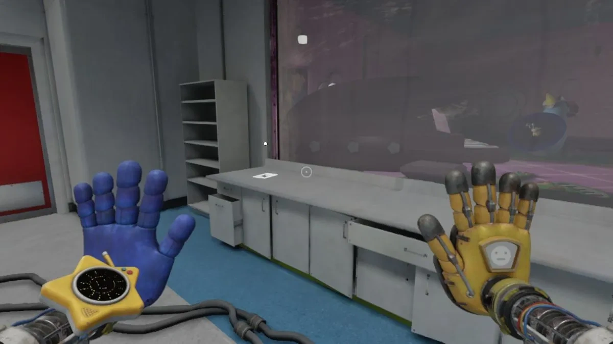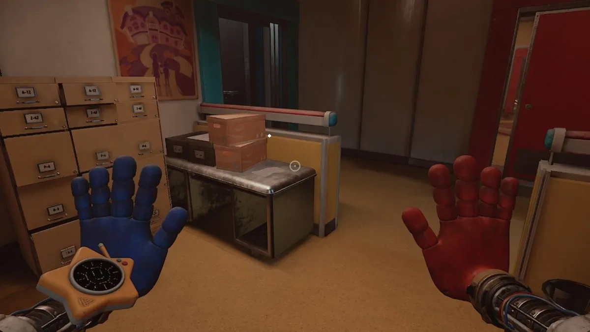- Где искать: Загляните в открытую шахту лифта на противоположной стороне и заберите блок питания "Playtime". Затем, слева от головоломки с рычагом для "Пневмо-руки", вставьте блок в стену коридора с красной лампочкой над дверью. Это откроет небольшую комнату, где и лежит записка.