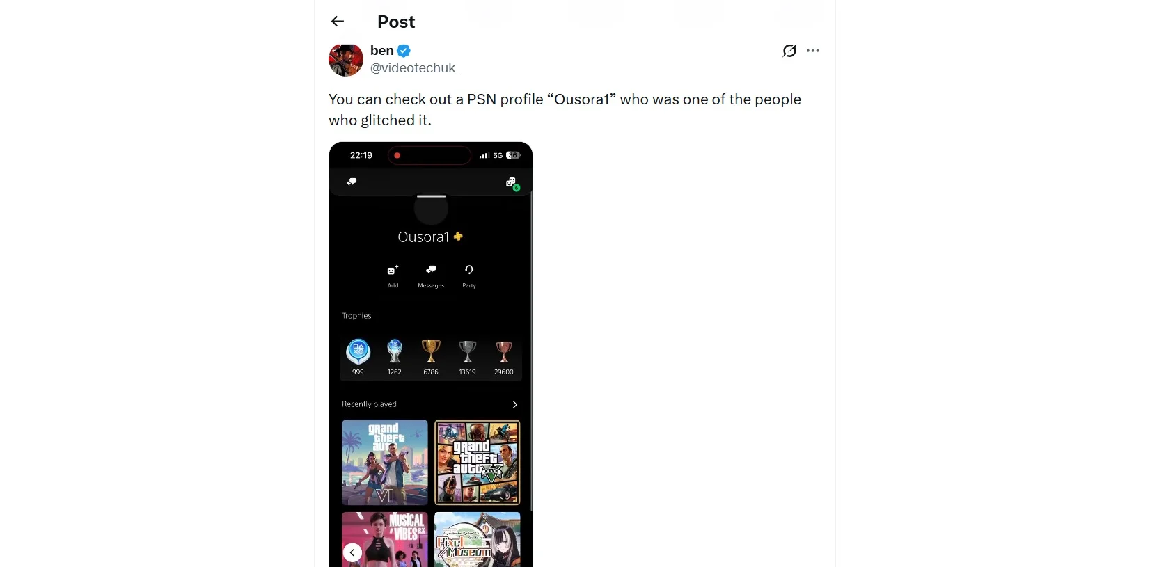 В отдельных аккаунтах PlayStation Network замечено появление Grand Theft Auto VI в списке недавних игр. Причина этого — инцидент с утечкой идентификатора из базы данных и последующая техническая ошибка.