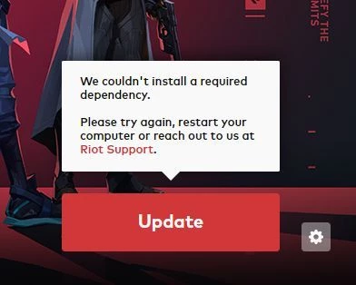 Ошибка приходит с сообщением «Не удалось установить зависимости Valorant».